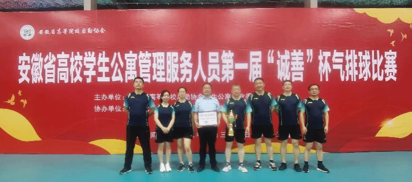 为全面贯彻落实国家《全民健身条例》,增强职工体质,营造健康向上的职工体育文化氛围,安徽省高等院校后勤协会学生公寓专业委员会于5月31日至6月2日在巢湖学院举办“安徽省高校学生公寓管理服务人员第一届气排球比赛”。我院后勤代表队经过两天的激烈角逐,最终获得二等奖和“体育道德风尚奖”。