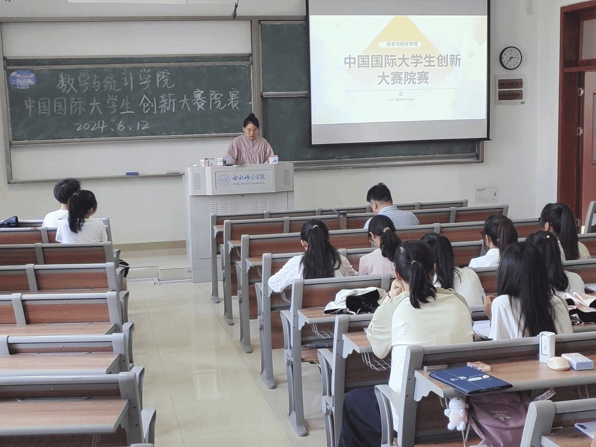 为进一步激发学生创新创业热情,提高学生创新创业能力,遴选高质量创新项目,6月12日下午,数学与统计学院在滨湖校区举办了第十届中国国际大学生创新大赛院级选拔赛,数学与统计学院副院长黄浩、辅导员刘全亚参加本次活动。