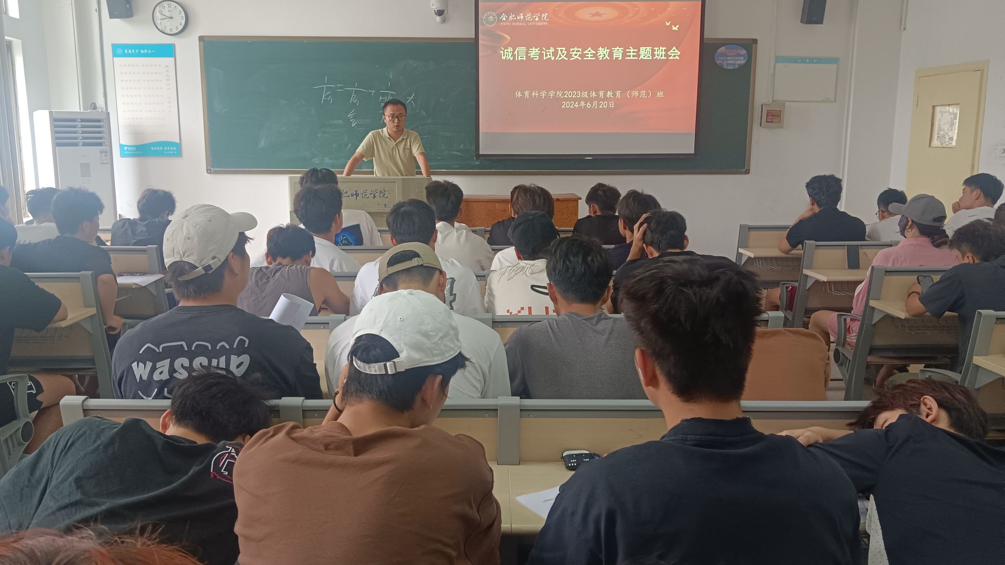 为切实加强学生诚信教育,引导学生做好假期安全防范工作。近日,体育科学学院各班辅导员分别组织召开诚信考试暨安全教育主题班会,学院各年级共600余名学生参加主题班会。