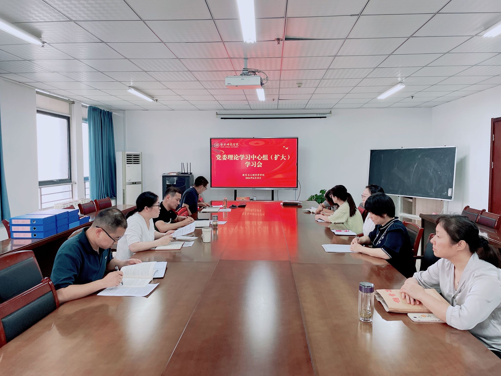 6月19日下午,教育与心理学院在行知楼710会议室举办党纪学习教育读书班集中交流研讨暨结业式。学院领导班子、党委委员、党支部书记参加学习研讨,会议由学院党委书记董萍主持。