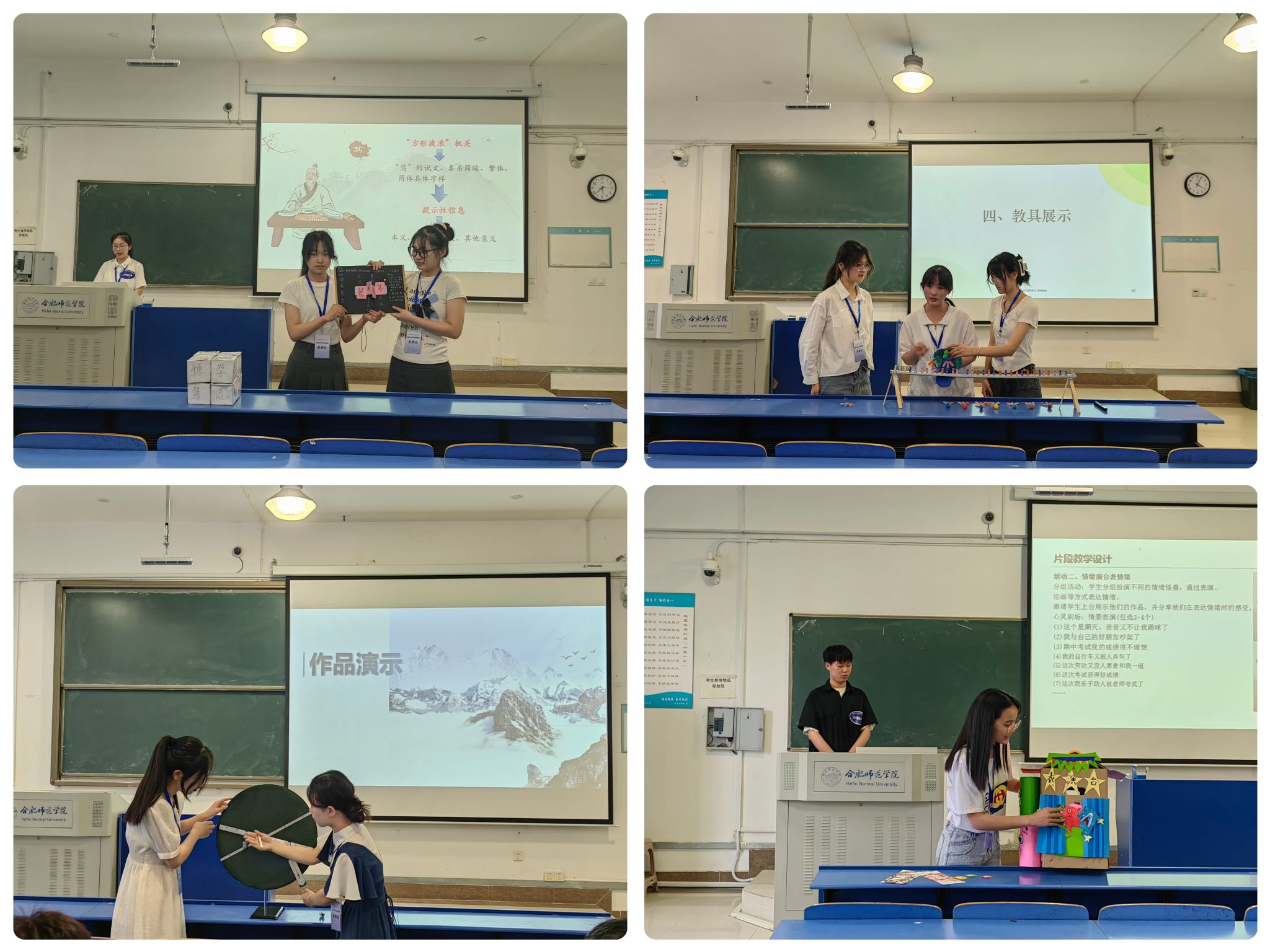 为进一步提高beat365官网师范生的专业技能和科学素养,培养学生的创新精神和实践能力,鼓励学生围绕学科教学和实习实践活动内容制作教具,切实提升师范生教学技能,6月19日下午在逸夫楼教师技能训练中心举办了2024年beat365中文官方网站师范生教具制作竞赛。