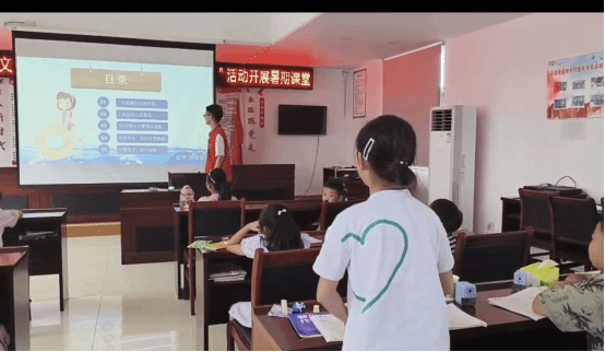 开班仪式结束后,“小先生”陈钱坤为学生们上了第一节课安全教育,主要是防溺水,交通安全等,通过课堂互动,让“小学员”加深印象。课堂上学生们认真听讲并积极回答老师问题,课堂氛围十分融洽。让孩子们在这堂课中学习到了许多安全知识,同时也增强他们的安全意识。