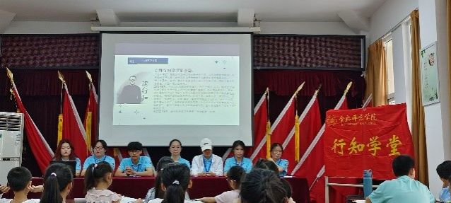 在开班仪式上,金桥社区党委书记华晶晶对学堂的开办表示热烈欢迎,表示将做好服务保障。学堂负责人程语欣同学详细介绍了行知学堂的发展历史和办学成效,展示了课程安排。小先生们将开展课业辅导、爱国教育、心理健康与安全教育,特别融入非遗扎染、皮影戏、八段锦等中华优秀传统文化活动。