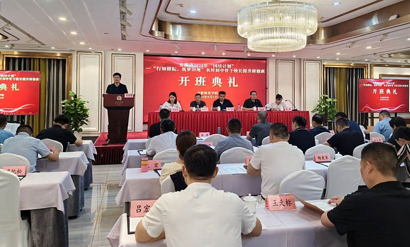 8月2日,由学院承办的安徽省2024年“国培计划”——农村初中骨干校长提升研修第一阶段集中培训在合肥隆重开班。继续教育学院副院长王磊、教育与心理科学学院副院长胡连峰、教育与心理科学学院培训办公室主任谢威士、教学班主任杨婷、生活班主任邱爱武、蒋晨晓等领导老师出席开班典礼,来自安徽省16地市61区县农村初中150名骨干校长参加开班典礼,开班典礼由蒋晨晓主持。