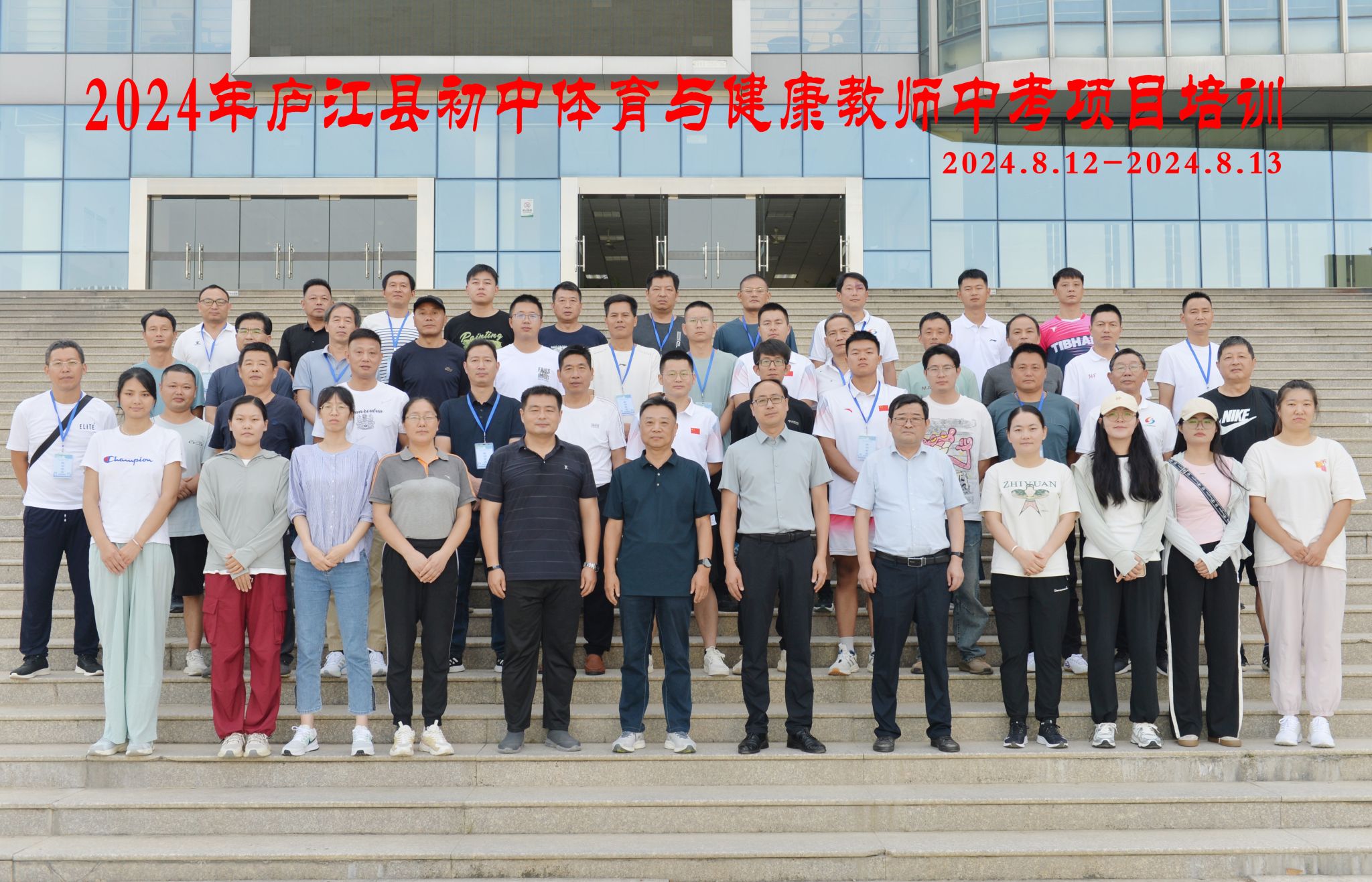 8月11日-13日,体育科学学院承办的2024年庐江县初中体育与健康教师中考项目培训顺利完成。庐江县44名初中体育与健康教师参加了本次培训。
