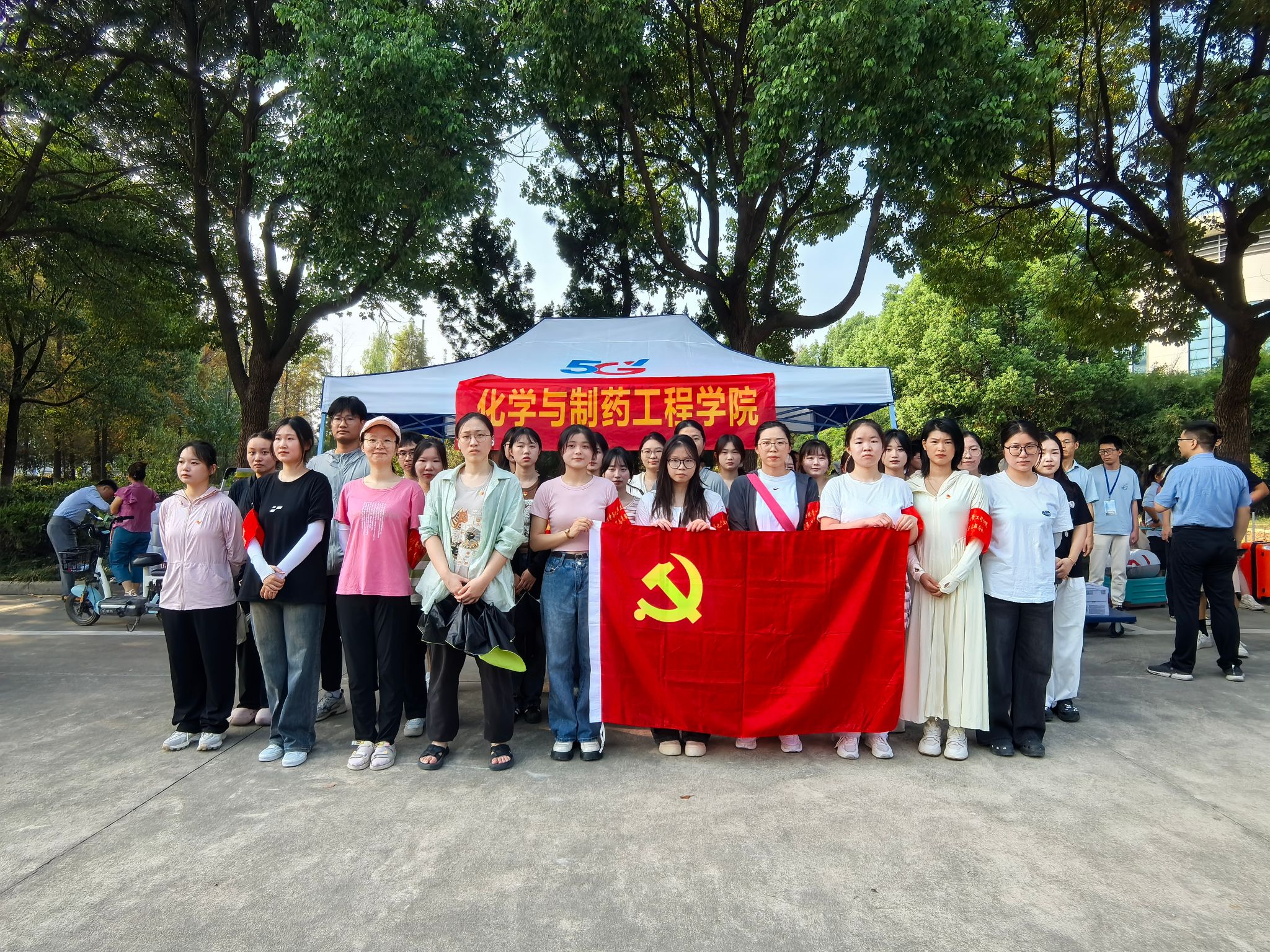 迎新现场,党旗飘扬