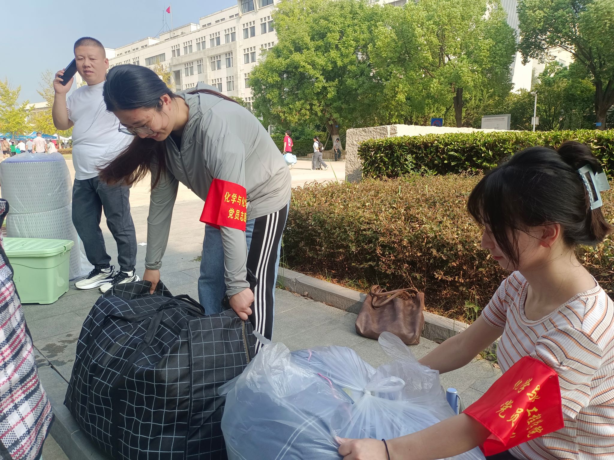 在宿舍区,党员志愿服务队志愿者帮助新生完成宿舍登记和行李搬运工作。他们不仅是新生们的引路人,更是新生入党启蒙教育的第一人。在搬运途中,党员们还不忘与新生交流,分享自己的大学生活经验,让新生们感受到来自学院的关怀与温暖。