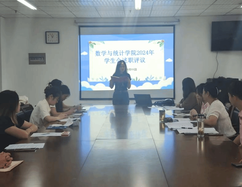为进一步推动学生会工作的制度化、规范化建设,深化学生会改革,加强数学与统计学院党团一体化建设,强化从严治会和学生会干部作风建设,9 月 11 日,数学与统计学院于行知楼 1102 会议室召开2023——2024 学年学生会干部述职评议会。本次会议由数学与统计学院分团委副书记曾飞主持,数学与统计学院党委书记穆娟、院学生会主席团成员和部门负责人参加本次会议。