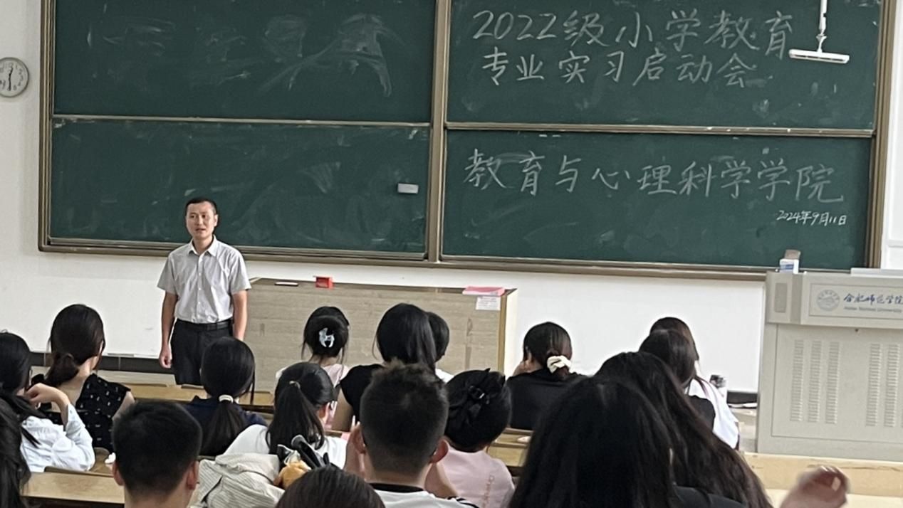 本次实习启动会的顺利召开,不仅为2022级小学教育专业学生的实习工作指明了方向,也为学院实践育人工作的发展注入了新的动力。相信在学院领导、老师和学生的共同努力下,本次实习工作将会取得圆满成功,为培养更多优秀的小学教育人才做出积极贡献。(教育与心理科学学院:唐银 朱一卓)