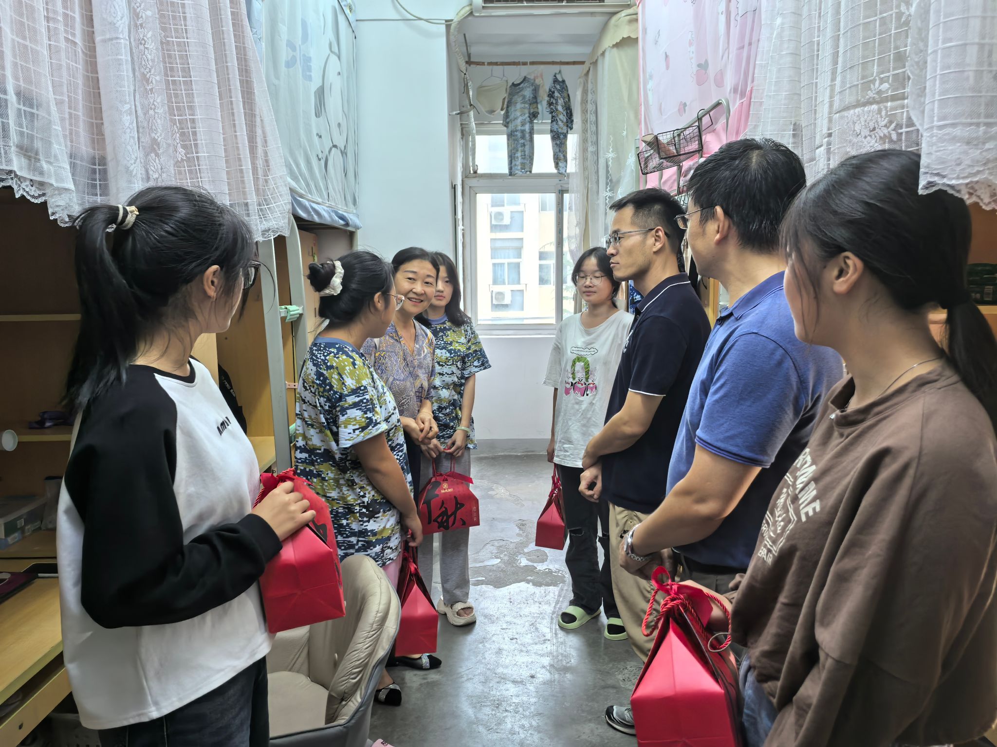 “明月当空洒银辉,中秋佳节倍思亲”。值此中秋佳节,为了让2024级新生们充分感受到节日的氛围和学院的关怀,9月17日下午,学院党委书记李红、院长朱金苗、副院长董雄辎和新生辅导员深入学生寝室,为新生送上中秋月饼。