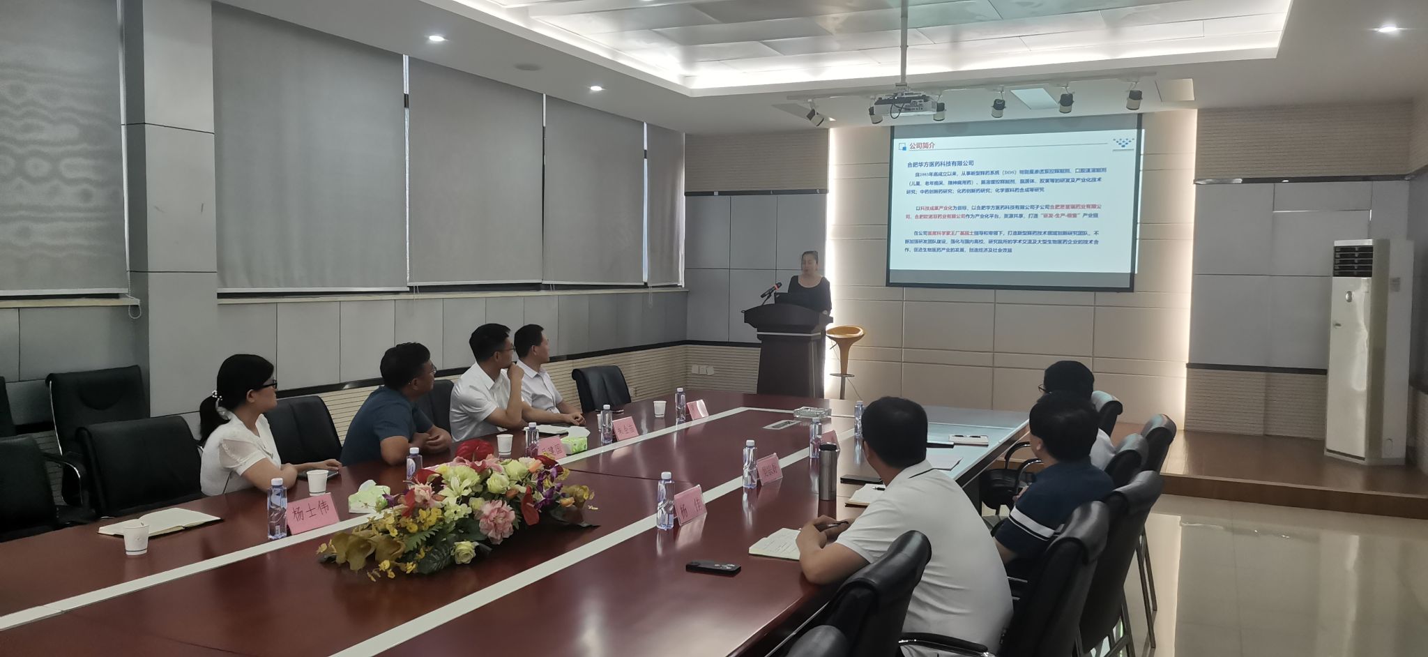 会上,吴宗好董事长代表合肥华方医药对beat365官网一行的到来表示热烈欢迎,他首先介绍了公司的发展历史、主营业务、核心产品和公司规模等基本情况,行政总监戴红介绍了公司科研平台和荣誉资质等,副总经理何勇介绍了近年来企业与高校合作的基本情况、产品结构、核心技术和科技奖申报等。