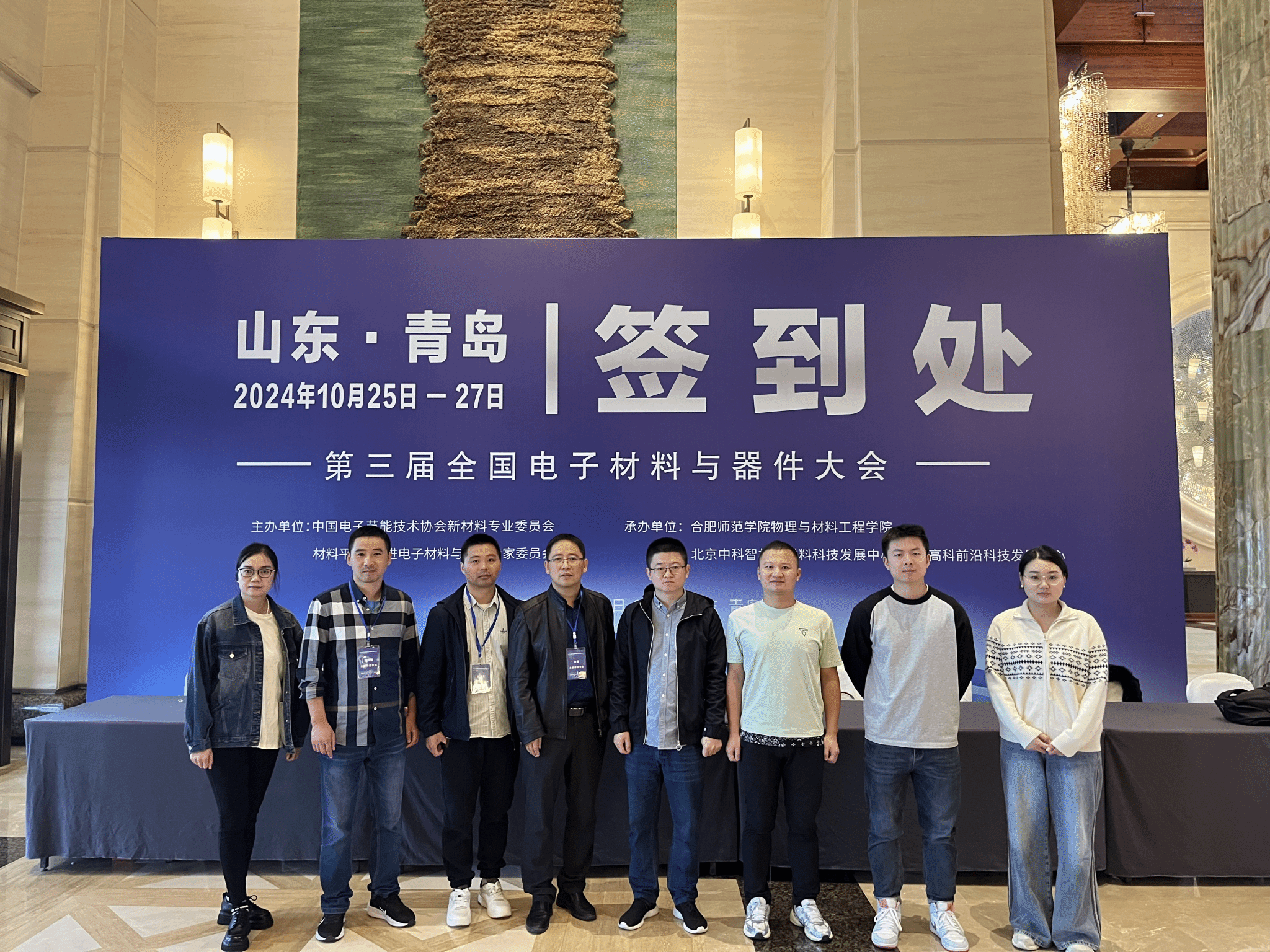 10月25至28日,第三届全国电子材料与器件大会在山东省青岛市顺利召开。作为领域内重要的专业性学术会议,本届全国电子材料与器件大会由中国电子节能技术协会新材料专业委员会和先进电子材料与器件专家委员会单位主办,beat365中文官方网站物理与材料工程学院、北京中科智材新材料科技发展中心和北京高科前沿科技发展中心联合承办。物理与材料工程学院院长訾振发教授带队,一行八人参加了本次会议。