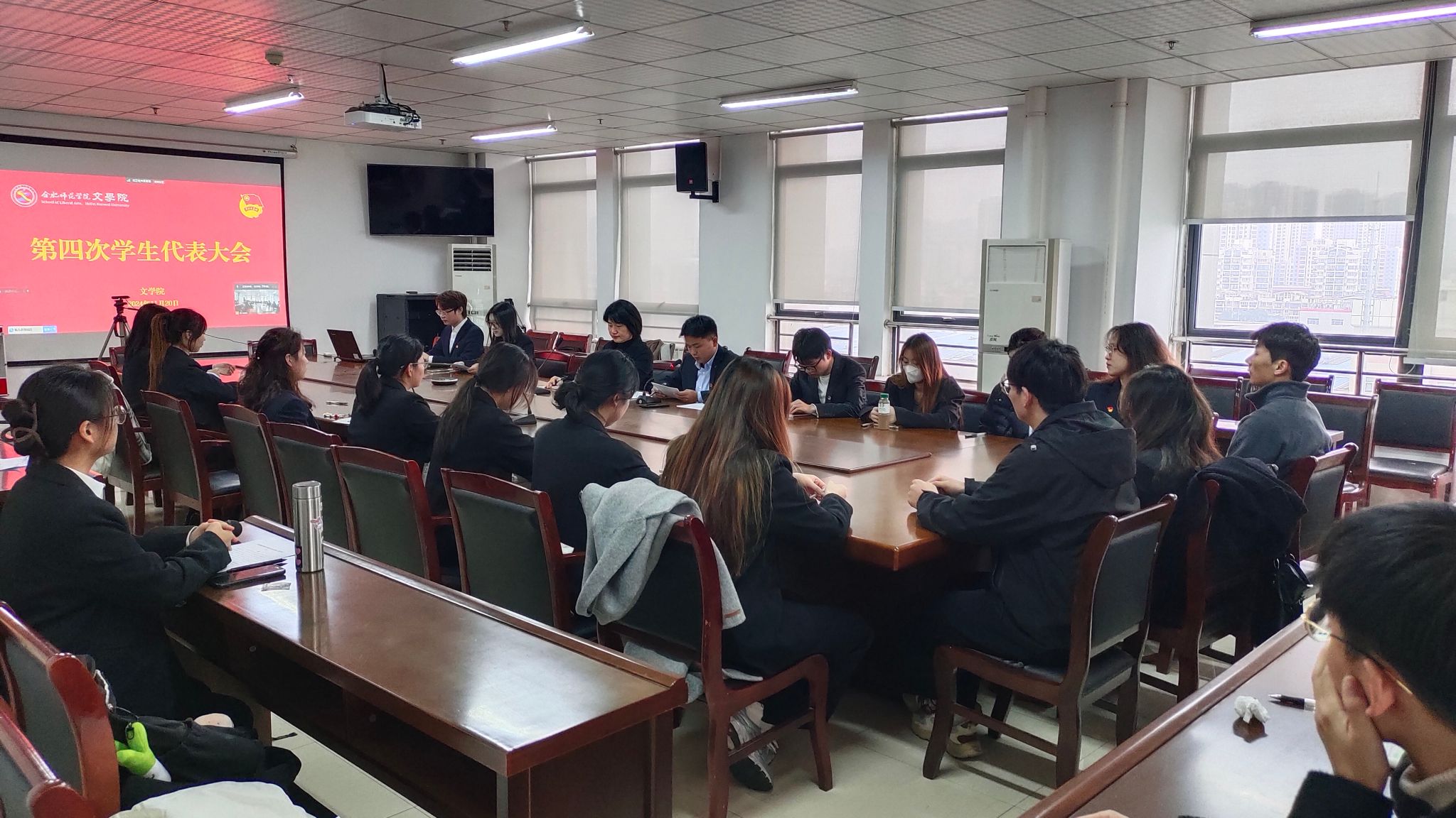 11月20日,文学院第四次学生代表大会在锦绣校区行知楼802会议室召开,滨湖校区在铭传楼B306设分会场。文学院党委副书记夏娟、团委书记李惠恩,来自文学院各班级的53名学生代表参加会议。会议由李惠恩主持。