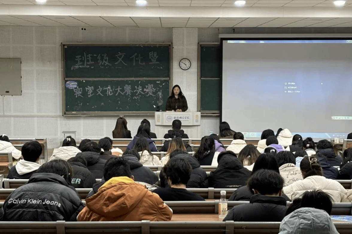 数学与统计学院于12月11日在滨湖校区博学楼D101成功举办了新生班级文化大赛。学院党委书记穆娟、新生辅导员周丽娜和王志参加活动并担任评委。150余名学生参加。
