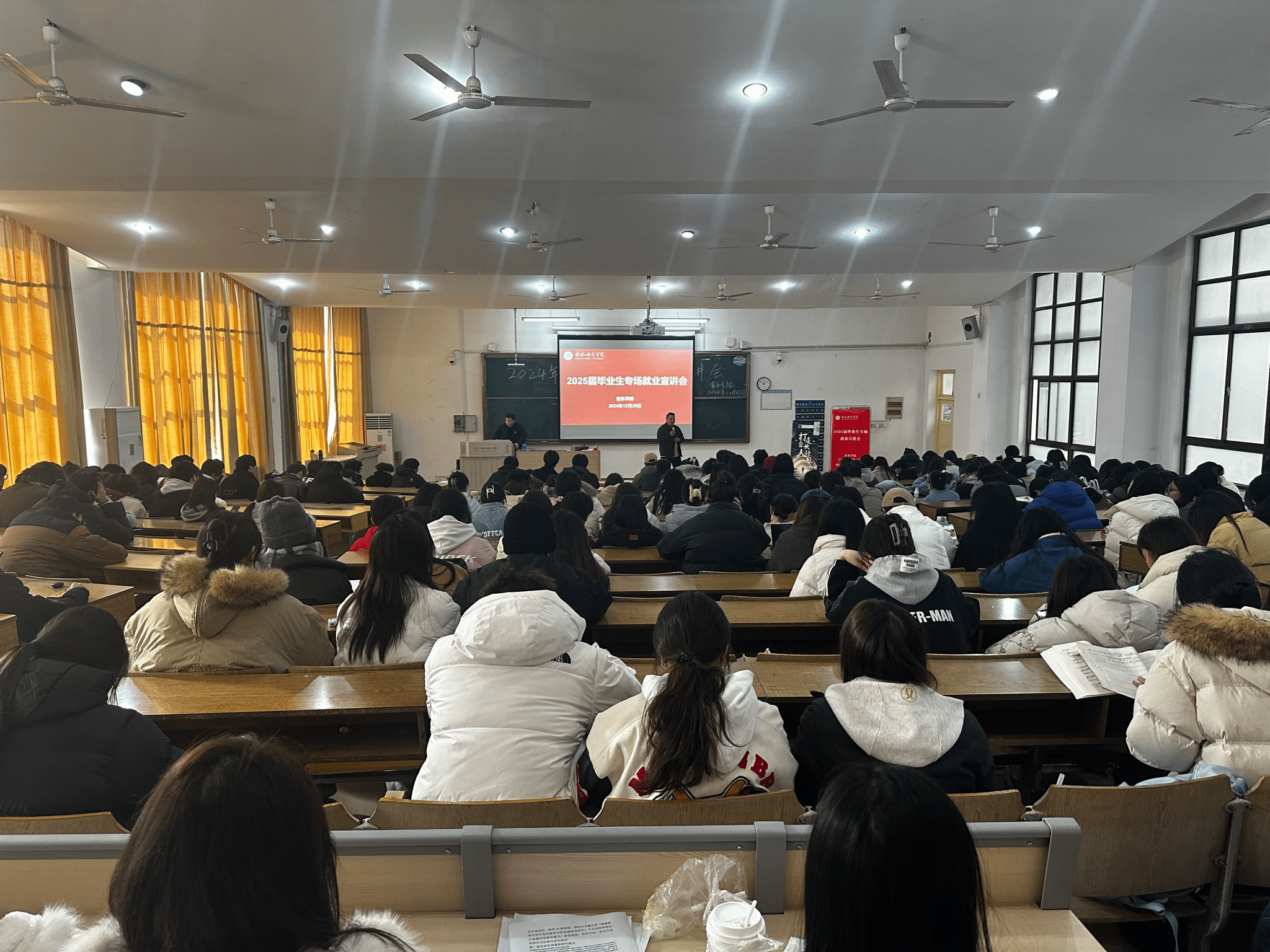 为深入贯彻落实学校就业工作“访企拓岗”的相关要求,加强毕业生就业帮扶力度,进一步拓宽毕业生就业渠道,促进毕业生高质量就业,音乐学院于12月26日下午2点在锦绣校区博约楼101举办了2025届毕业生招聘宣讲会。校党委委员、副校长华银峰出席会议,音乐学院2025届全体本科生参会,音乐学院党委书记蔡成梅主持会议。