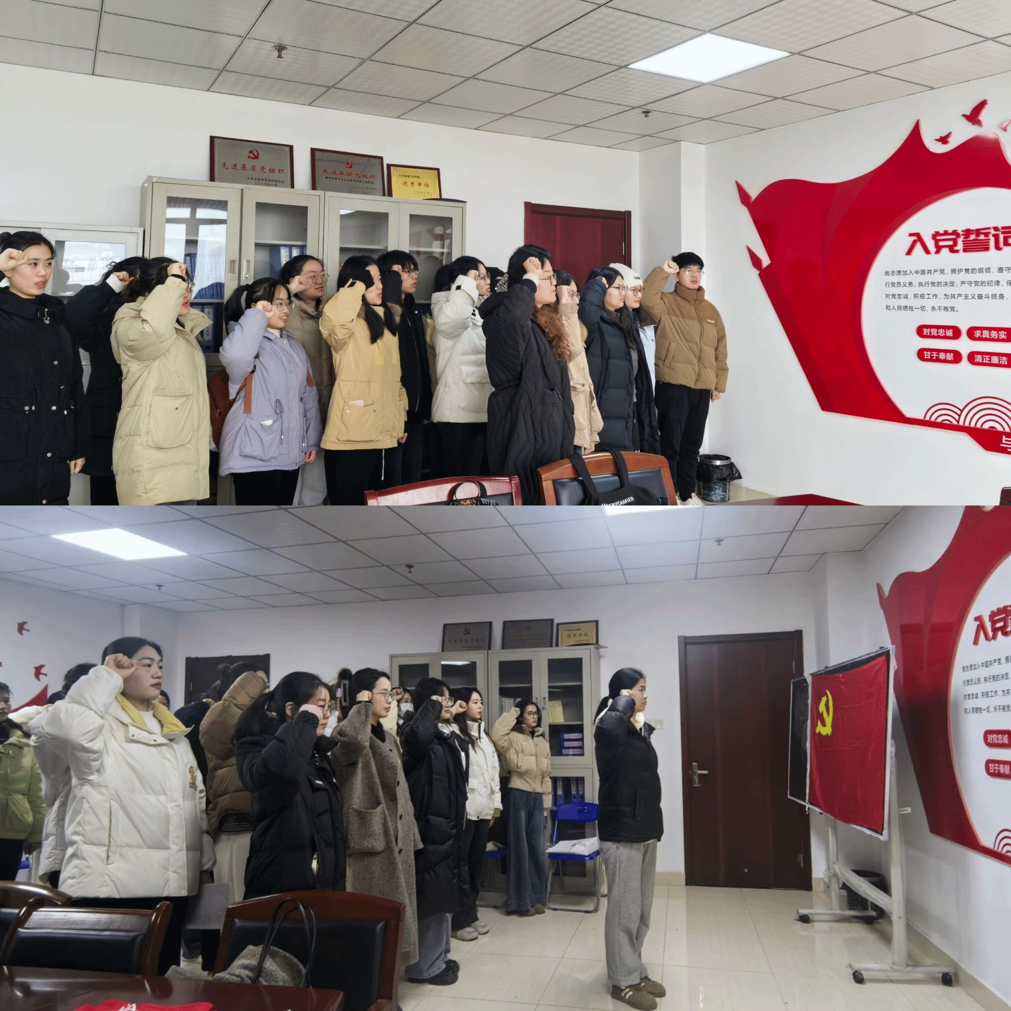 随后,在支部书记胡蝶、唐淼的带领下,全体党员高举右拳重温入党誓词,铮铮誓言提醒每位党员同志守住初心、不忘本心。