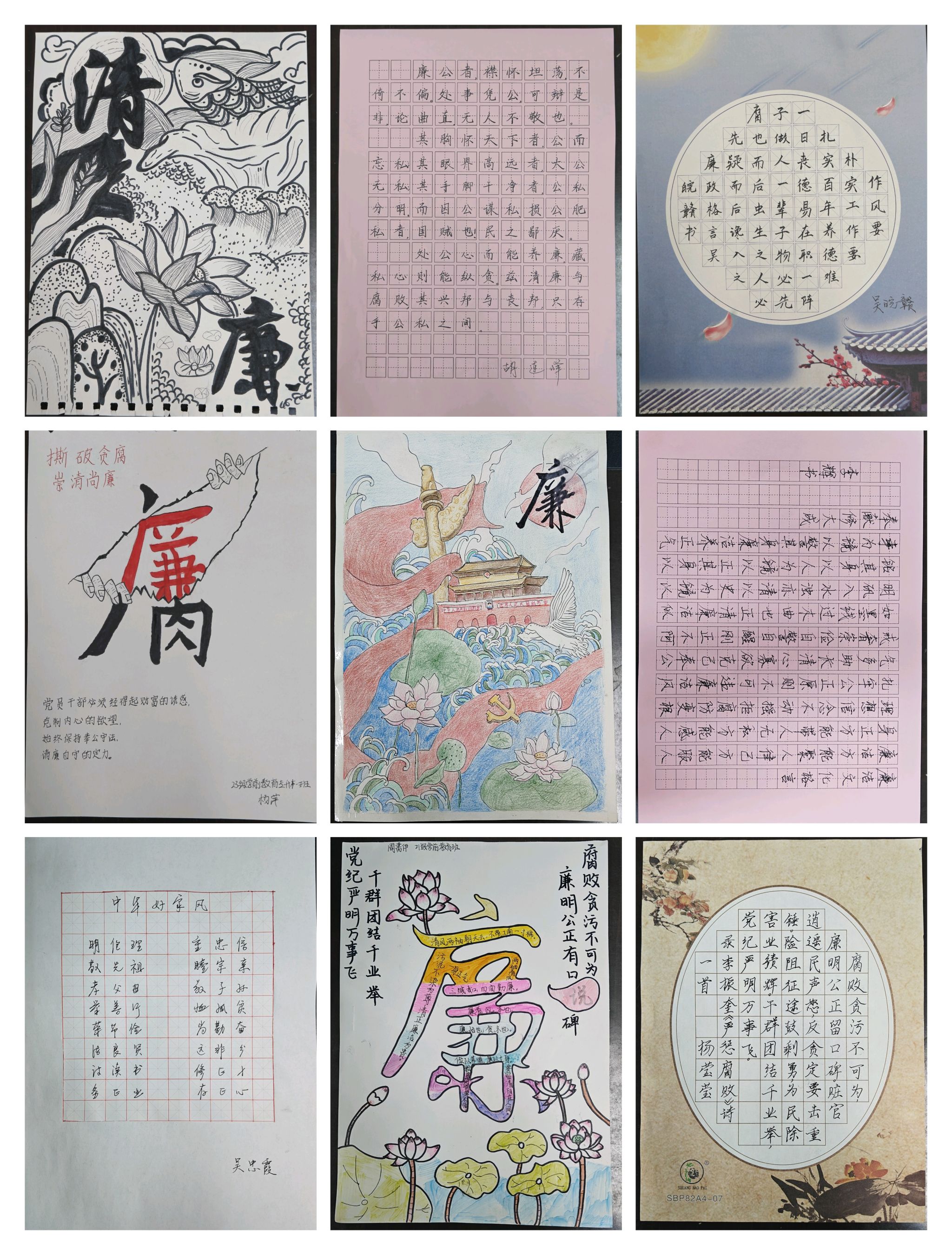 学院以“以画绘廉”为主题在师生群体中举办了一次廉洁文化作品展,作品包括师生员工的硬笔书法、水彩画等,既展示了师生们的艺术才华与创造力,又充分展现了广大师生崇廉尚美、洁身自爱的美好追求,推动形成诚实守信、正直廉洁的文化氛围。