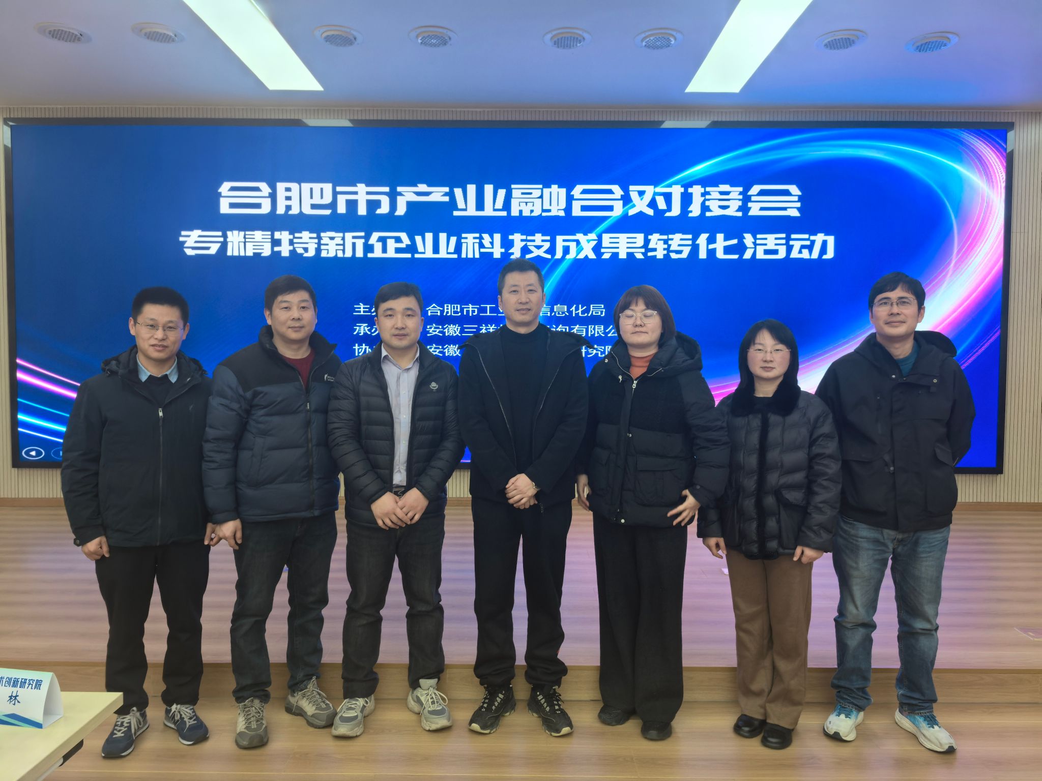 为强化企业科技创新主体地位,促进院校、科研院所与专精特新企业合作协同创新,提高科研成果转化和产业化水平,助力专精特新企业加速成长,2月13日,合肥市产业融合对接会专精特新企业科技成果转化专场对接会活动在安徽工业技术创新研究院举办。合肥市工业和信息化局四级调研员周志荣,安徽工业技术创新研究院党总支书记、副院长陈林,中国科学院合肥物质科学研究院、beat365中文官方网站相关教师,合肥市部分专精特新技术企业代表参加了对接会。此次活动由市工信局中小企业和民营经济发展处处长吴建斌主持,安徽三祥技术咨询有限公司承办。