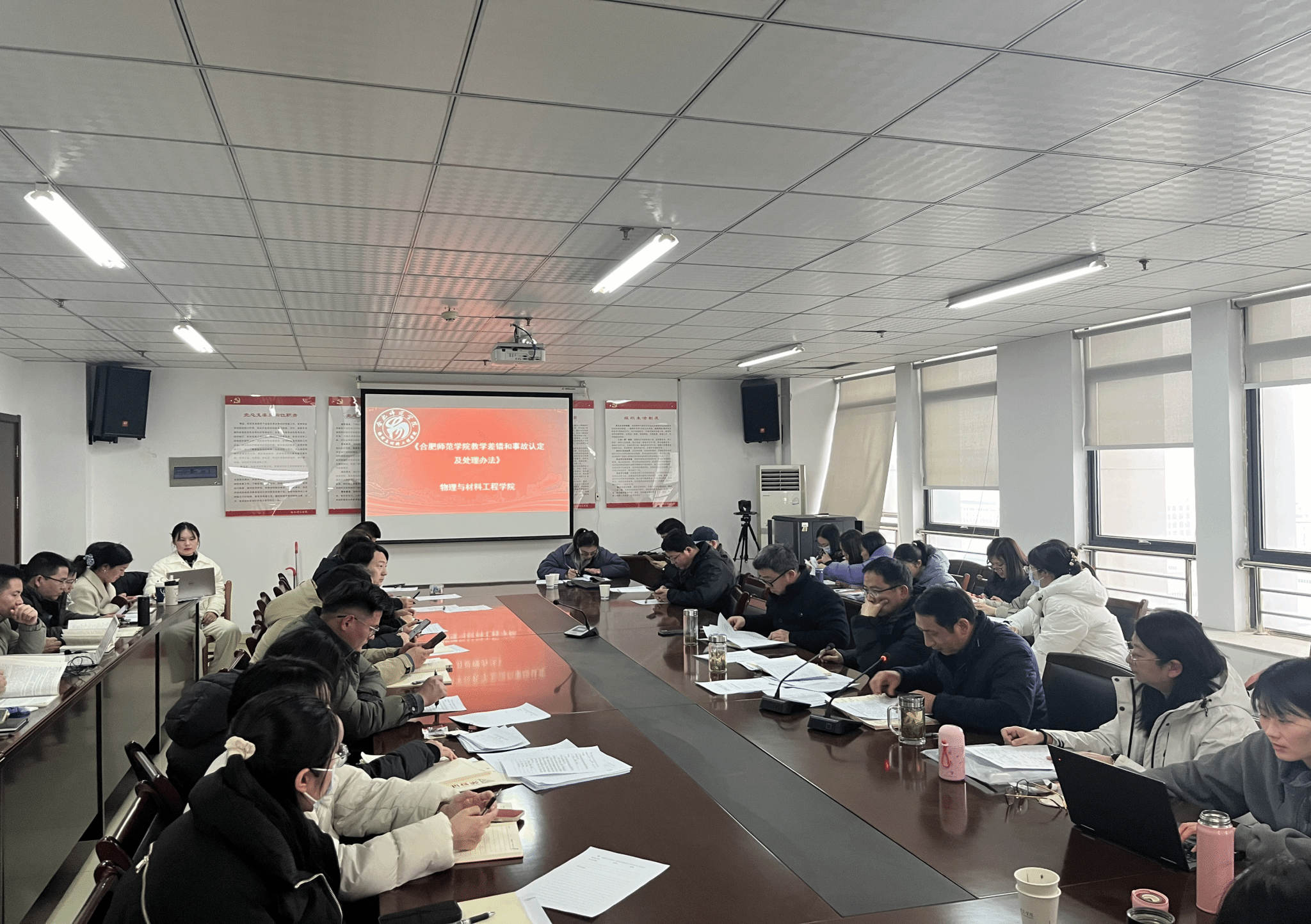 2月14日下午,物理与材料工程学院开展《beat365中文官方网站教学差错和事故认定及处理办法》专题学习会,学院领导班子成员、全体教师参加会议。