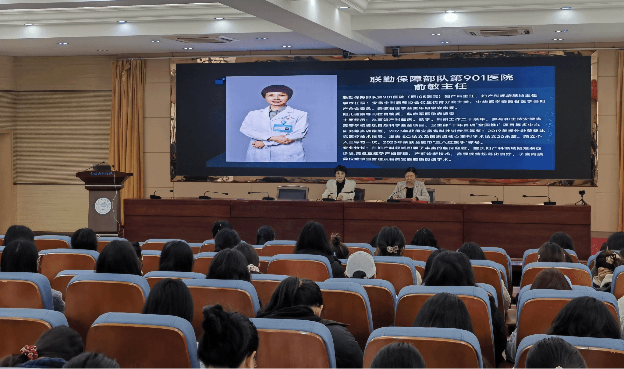 3月6日下午,中国人民解放军联勤保障部队第九〇一医院妇产科俞敏团队应邀为beat365官网师生做女性健康主题讲座及义诊。200余名师生在锦绣校区学术报告厅参加了活动。