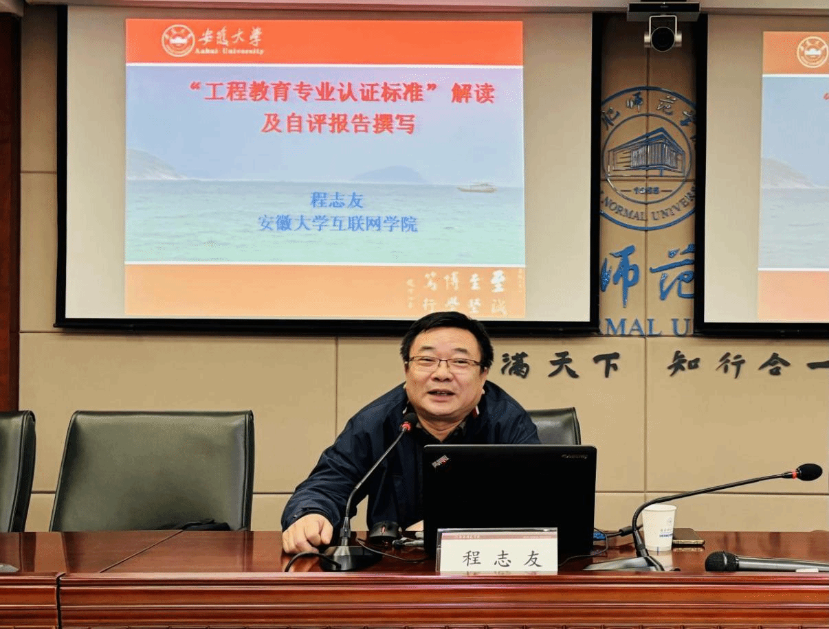 程志友以《“工程教育专业认证标准”解读及自评报告撰写》为题,结合工程教育评建工作经验,从申请报告撰写、通用标准的基本内容、专家考查重点与常见问题、评建责任分工与注意事项等多个方面,对如何撰写自评报告和开展评建工作进行详细解读。