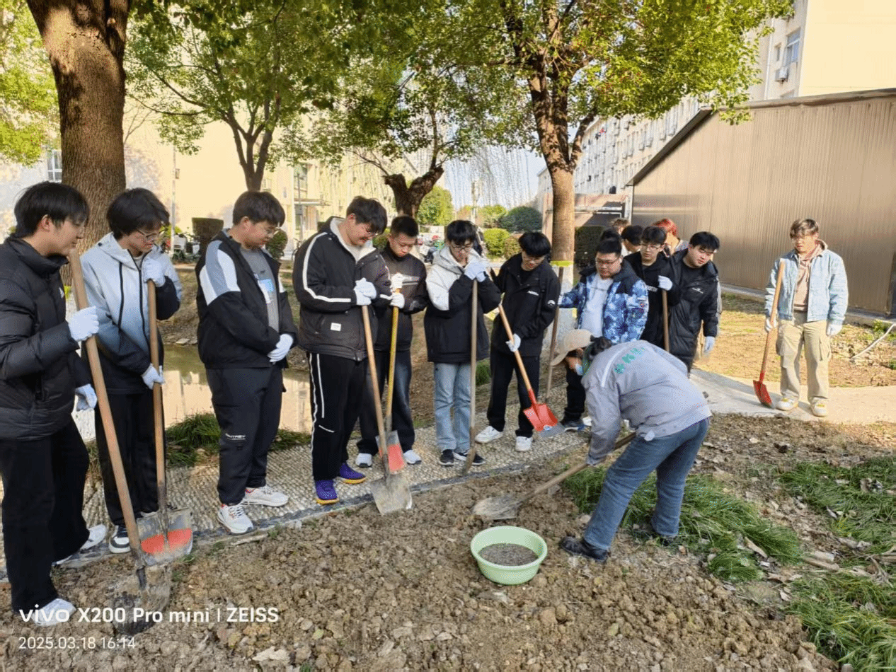 物业外围环境主管王培培为同学们讲解了栽培技能和环境保护相关知识。活动中,同学们热情高涨,分工合作,积极参与到学生公寓石子路铺设、柳林花田种植以及月牙湖百日红生态长廊共建等项目中。大家挥洒汗水,捡拾碎石、播种花籽、栽种苗木,用实际行动为校园环境增添了一抹亮色。