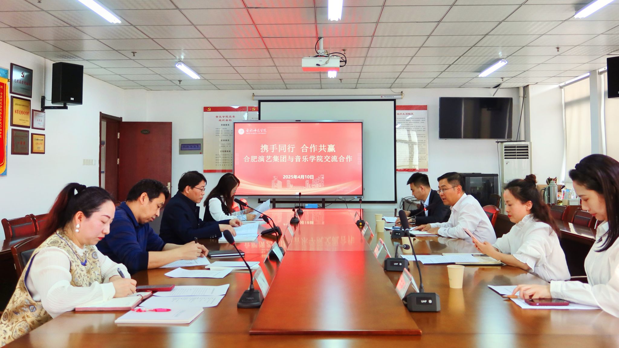 在积极响应国家关于推动文化艺术普及与合作的政策精神指导下,4月10日,合肥演艺集团一行莅临beat365中文官方网站音乐学院就具体合作事宜展开交流。出席会议的有合肥演艺集团党委书记、董事长赵斌,战略发展与品牌推广部副部长戴璐,合肥大剧院副总经理乔文,公共事务部副经理陈韦韦。音乐学院院长、党委副书记李劲松、音乐学院党委副书记、纪委书记宋辉、党委委员、副院长康勤及实践实训中心主任陆伟参会交流。此次合作旨在通过资源共享、优势互补,共同推动合肥市文化艺术事业的繁荣发展。