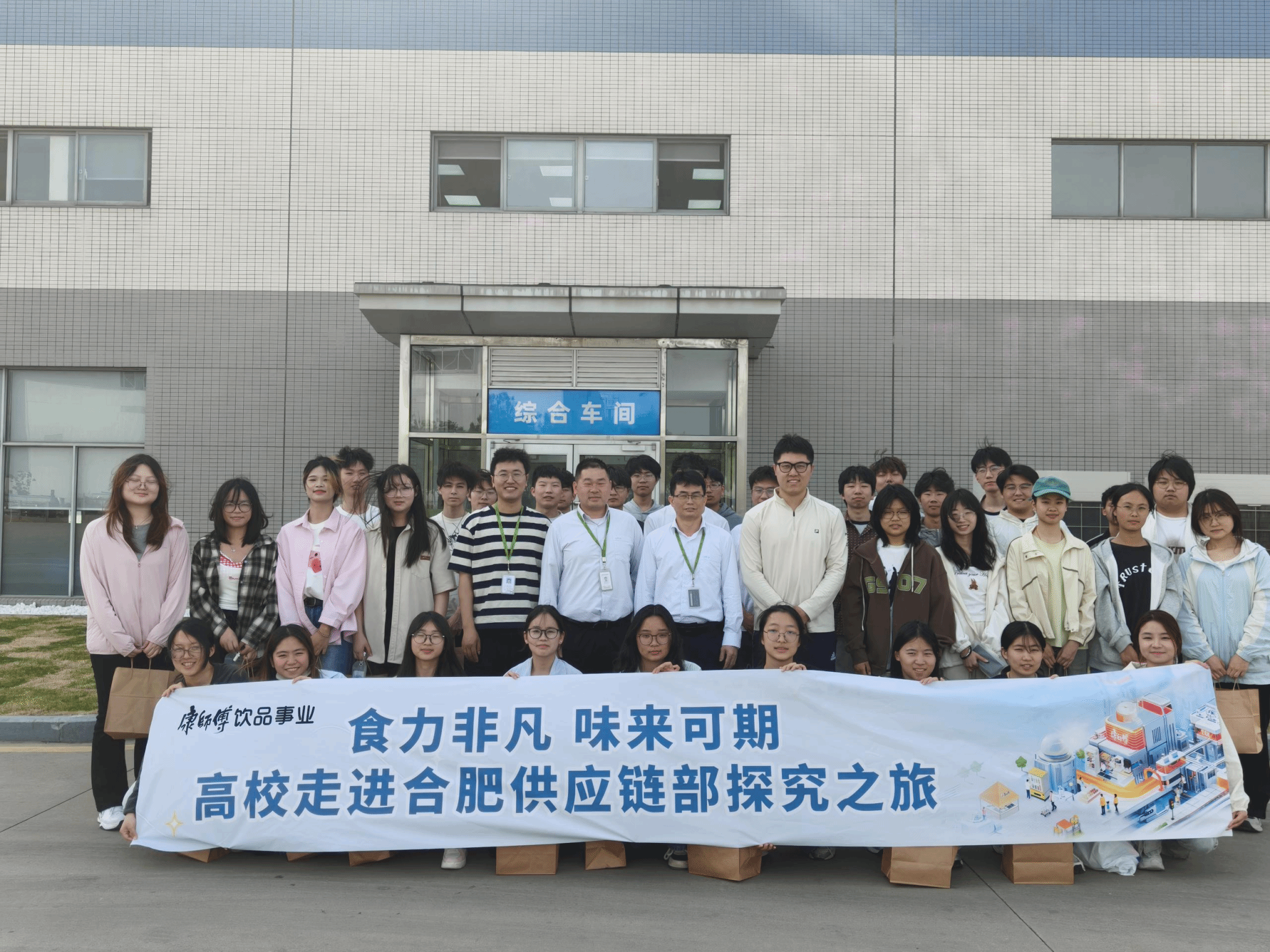 为进一步深化校企合作、拓宽毕业生就业渠道,推动应用型人才培养, 4月16日,生物与食品工程学院食品质量与安全党支部书记徐浩然带领30余名团学骨干赴康师傅控股旗下核心企业—合肥顶津食品有限公司开展校企学习交流活动。本次活动旨在搭建校企合作平台,探索产学研协同创新模式,助力学生职业发展。康师傅合肥顶津食品有限公司合肥品管处处长谢冬文、检验科科长王龙兵、校企招聘专员时义杰参加此次学习交流活动。