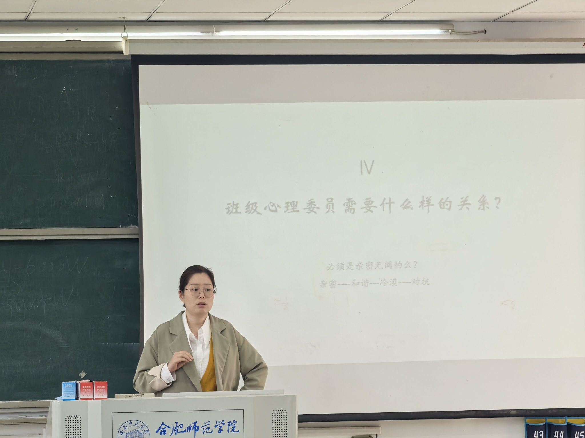第一专题为“班级心理委员工作实操技能提升”,由心理健康教育中心李晶晶老师主讲。李晶晶从常见的心理委员与班级同学工作关系案例导入,共同探讨了关系的种类、关系建立的基础、关系的发展机制以及心理委员需要什么样的关系、心理委员建立和发展关系的天然优势等问题,并就拉近与同学关系和调节宿舍矛盾提出具体可操作的实用技能。同时,向心理委员们传达了即将开展的第十九届心理健康节的工作安排。