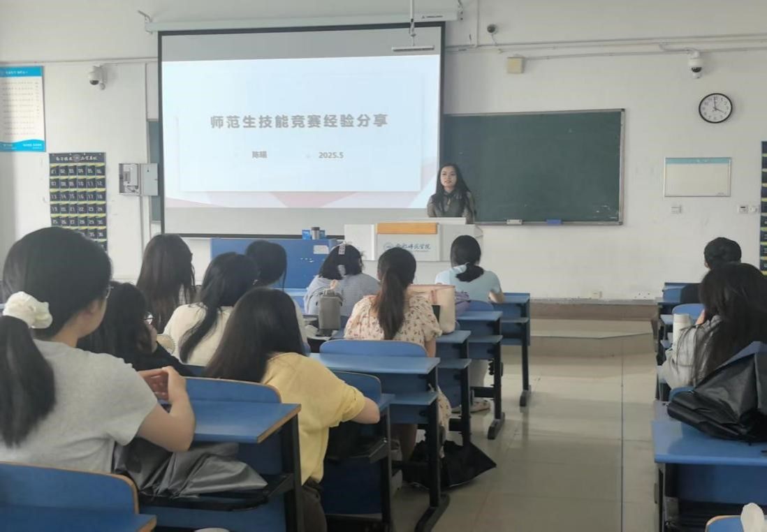 作为文学院历史上首位斩获全国“田家炳杯”教育硕士教学技能大赛一等奖的学生,陈曦以“从校赛到国赛:一场教学技能的蜕变之旅”为题,分享了2023年参赛的实战经验。她回顾了从选题打磨、教学设计到现场授课的全过程,强调“细节决定成败”:“一堂10分钟的微课,我修改了27版教案,录了50多次模拟视频,连手势和眼神都反复推敲。”她还结合评委反馈,总结了“紧扣新课标理念”、“巧用情境化教学”、“强化师生互动生成”三大核心技巧,鼓励学弟学妹:“比赛不仅是竞技场,更是突破自我的成长阶梯。”