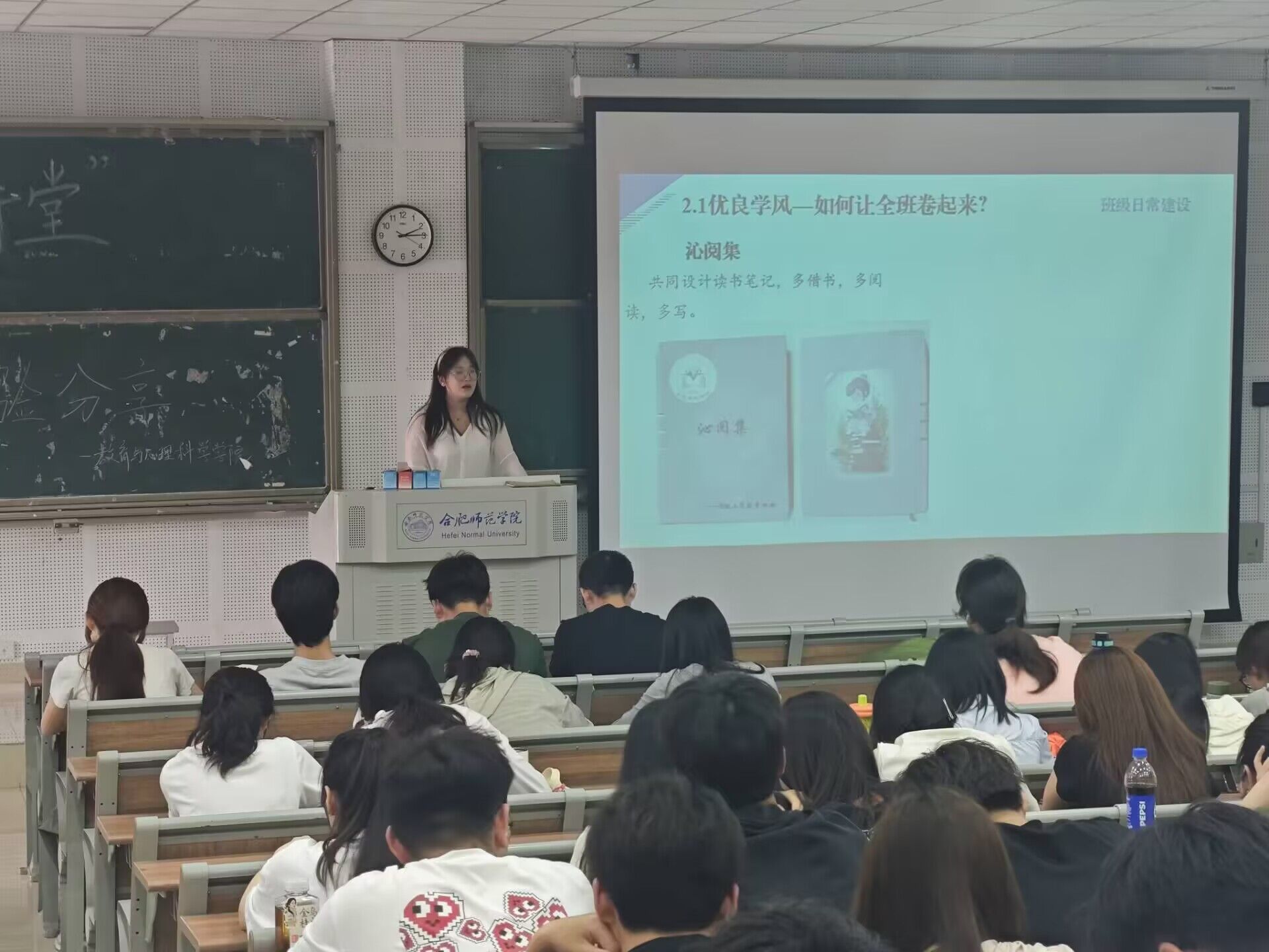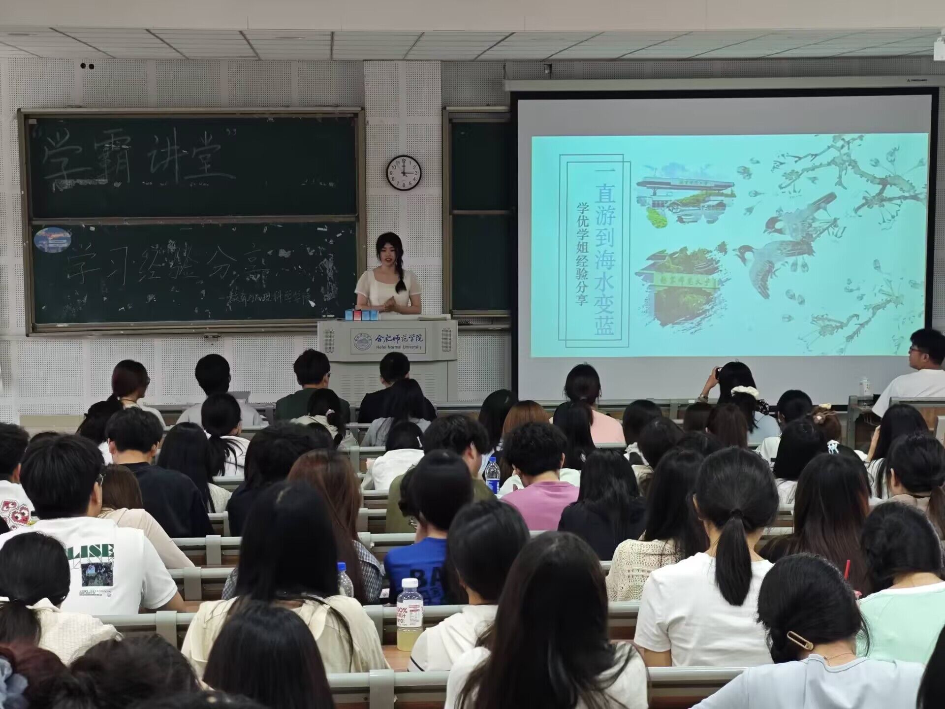 为充分发挥优秀学子榜样引领作用,助力青年学生掌握学习方法、明晰发展方向、激发学习热情,5月14日,教育与心理科学学院在滨湖校区博学楼D101教室举办“学霸讲堂”活动。教育与心理科学学院国家奖学金获得者、2024年度“感动合师”十大青年学生之拼搏人物——2021级小学教育专业王学优,考取陕西师范大学硕士研究生、2021级学前教育专业胡鹏,以及2024年度十佳班级、五四红旗团支部标兵获得者——2022级小学教育4班班长柏雪作为优秀学生代表,分享了学习经验和成长心得,2023、2024级200余位同学参加了学习分享。