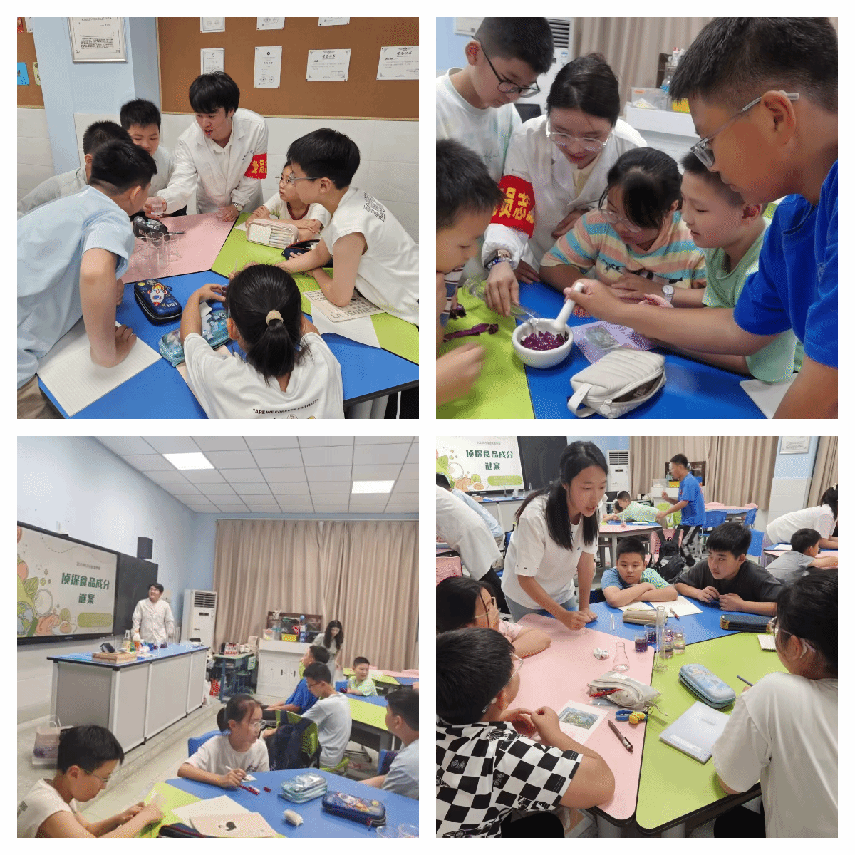 在互动实验环节,小学生们对"花青素变色"现象表现出浓厚兴趣。"为什么紫甘蓝汁遇到白醋会变红?""哪些蔬菜也能做这个神奇的实验?"面对孩子们充满好奇的提问,在志愿服务队的党员志愿者们帮助下,小学生们分组观察了不同食品样本中花青素的变色反应。通过这种沉浸式实验体验,抽象的食品安全知识变得直观可感,科学探究的种子悄然播撒在孩子们心间。王媛媛表示,此次“党建+科普”食品安全活动,不仅增强了学生们的食品安全意识,也展现了beat365中文官方网站大学生党员志愿者服务社会的责任担当。