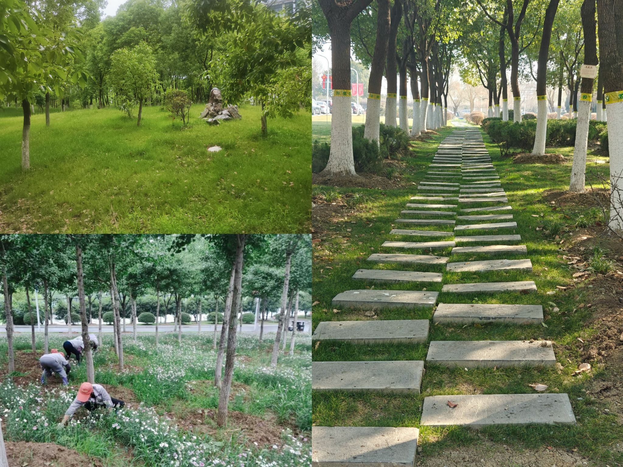 突出校园各区域特色,从细微之处着手,精心雕琢校园绿化景观和人文环境,将美丽校园建设同“环境育人”有机结合。系统对锦绣校区图书馆西北角桃李林、校医院西侧香樟林、行知楼西南角的林荫道等地进行了系统改造,将原本废弃的条石利用改成了便利师生的林荫绿色小道,将“建筑垃圾山”变成新的绿色地标。