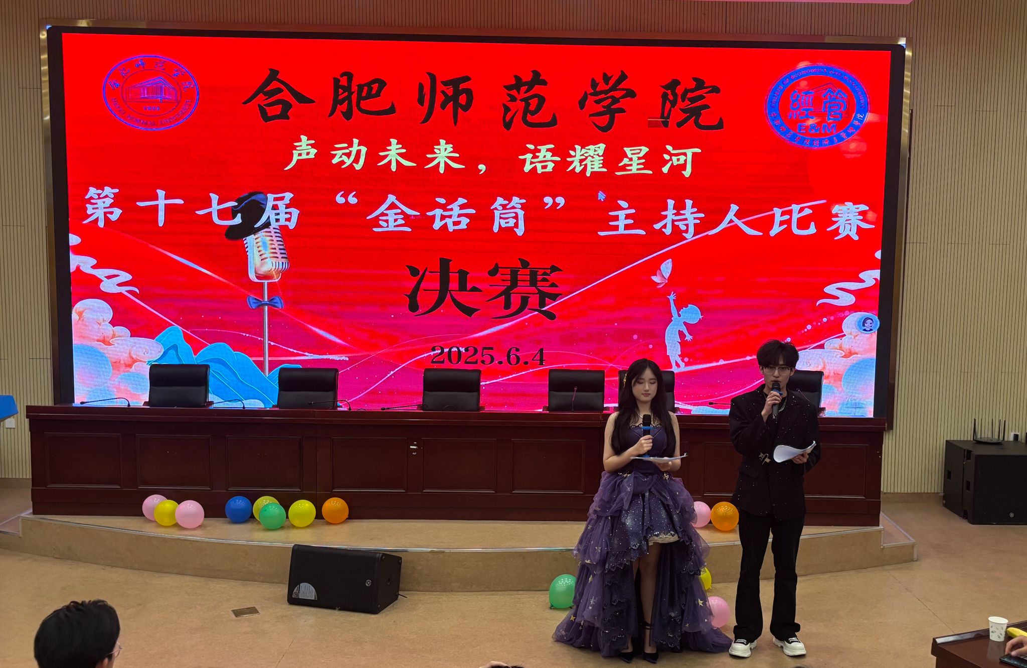 6月4日晚,由经济与管理学院承办的beat365中文官方网站第十七届“金话筒”主持人大赛决赛在滨湖校区学术报告厅圆满落下帷幕。经过激烈角逐的初赛,这场由经管学院主办的决赛为师生们带来了一场别开生面的语言艺术盛宴,在合师校园文化天空中闪耀着独特的光芒。