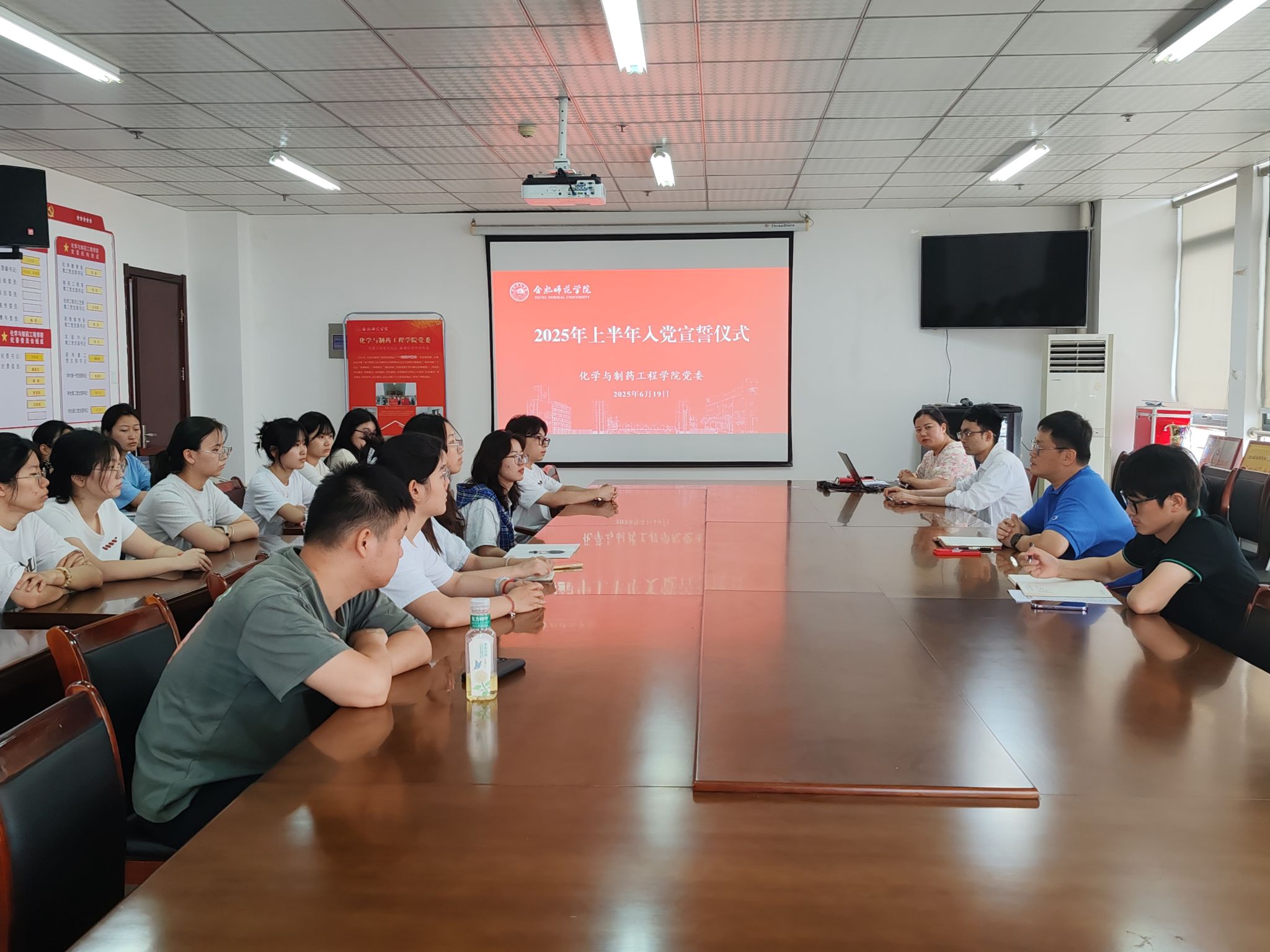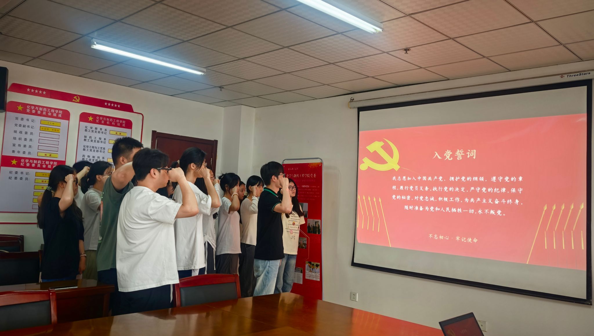6月19日中午,化学与制药工程学院党委在行知楼1402会议室召开了2025年上半年新接收预备党员入党宣誓仪式。学院党委书记刁文彬、各学生支部书记、正式党员代表以及全体预备党员参加本次仪式。