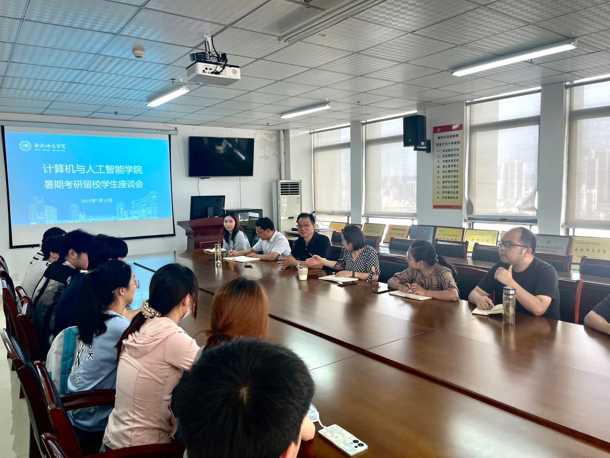 为深入了解暑期留校考研学生的备考状态与实际需求,精准助力学生高效备考,7月15日上午,计算机与人工智能学院在行知楼1302会议室召开2025年暑期考研留校师生座谈会。学院党委书记王祥、院长谢飞、党委副书记杨萍、副院长刘路路、软件工程专业负责人陈黎伟,2026届毕业班辅导员及留校考研学生代表参加会议,会议由杨萍主持。