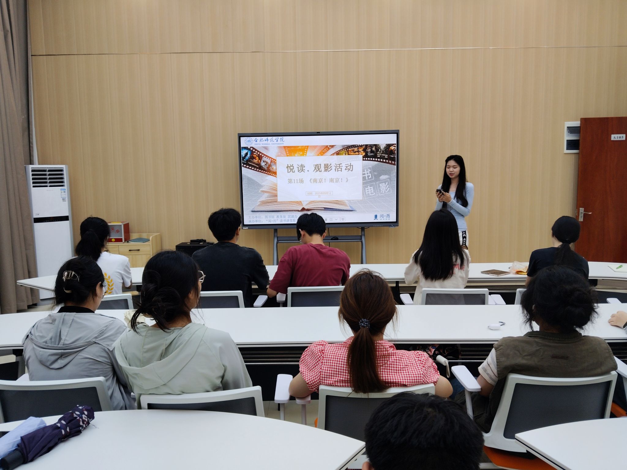 9月12日晚,在滨湖校区图书馆“阅+历”读书讲堂开展了《南京!南京!》专场观影活动,拉开“见证抗战历史 弘扬爱国精神”主题“悦读·观影”科普月系列活动的序幕。本活动由三期系列活动组成,线上与线下相结合,以“见证抗战历史 弘扬爱国精神”为主题,通过放映抗战题材经典影片,推荐相关书籍阅读,开展交流研讨与观影答题,铭记抗战历史,激发青年学子的爱国情怀。