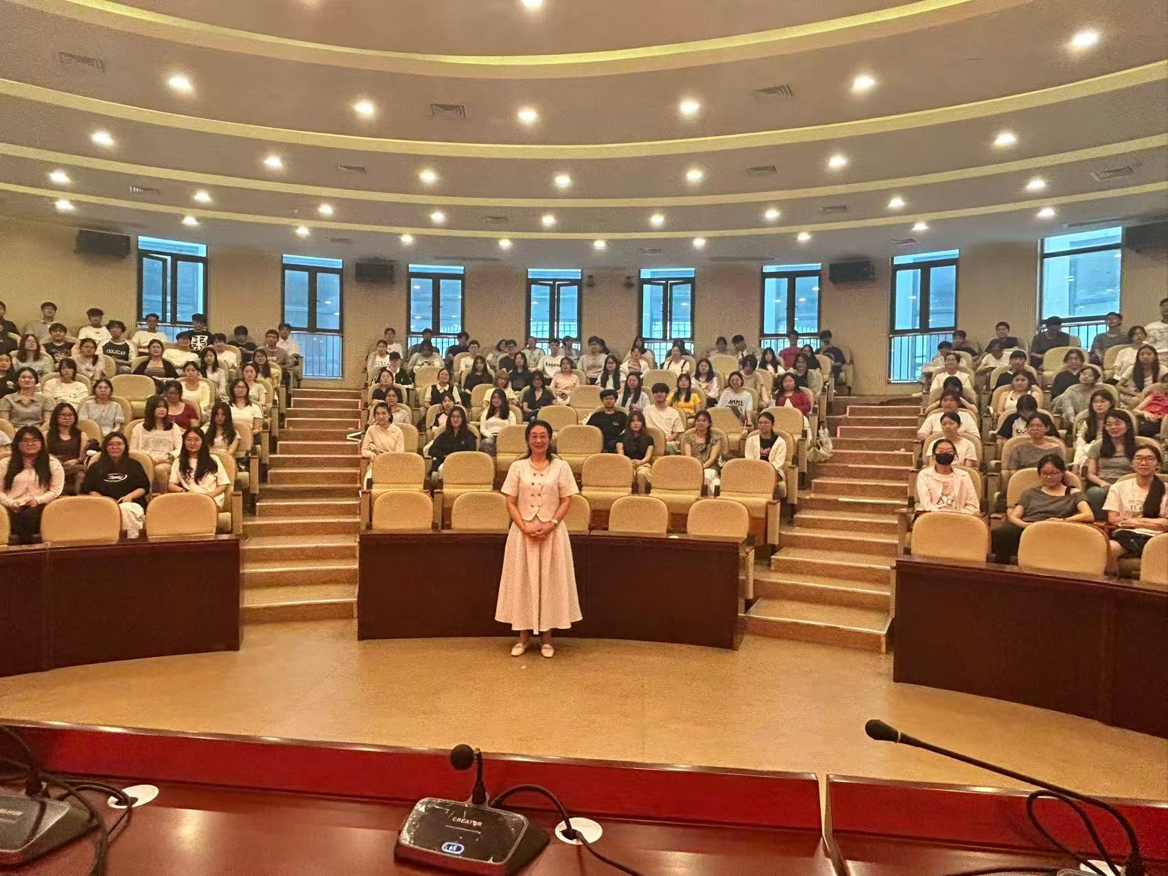 在互动环节,倪道钧校友回答同学们的问题时说,应对人生道路上的困难,要有坚韧的意志力,要用智慧找到克服困难的办法,选择职业方向时不要给自己设限,要敢于尝试多种可能性。她寄语在场同学们,要勇敢追梦,不惧挑战,要持续学习,要心怀感恩之心,要脚踏实地。