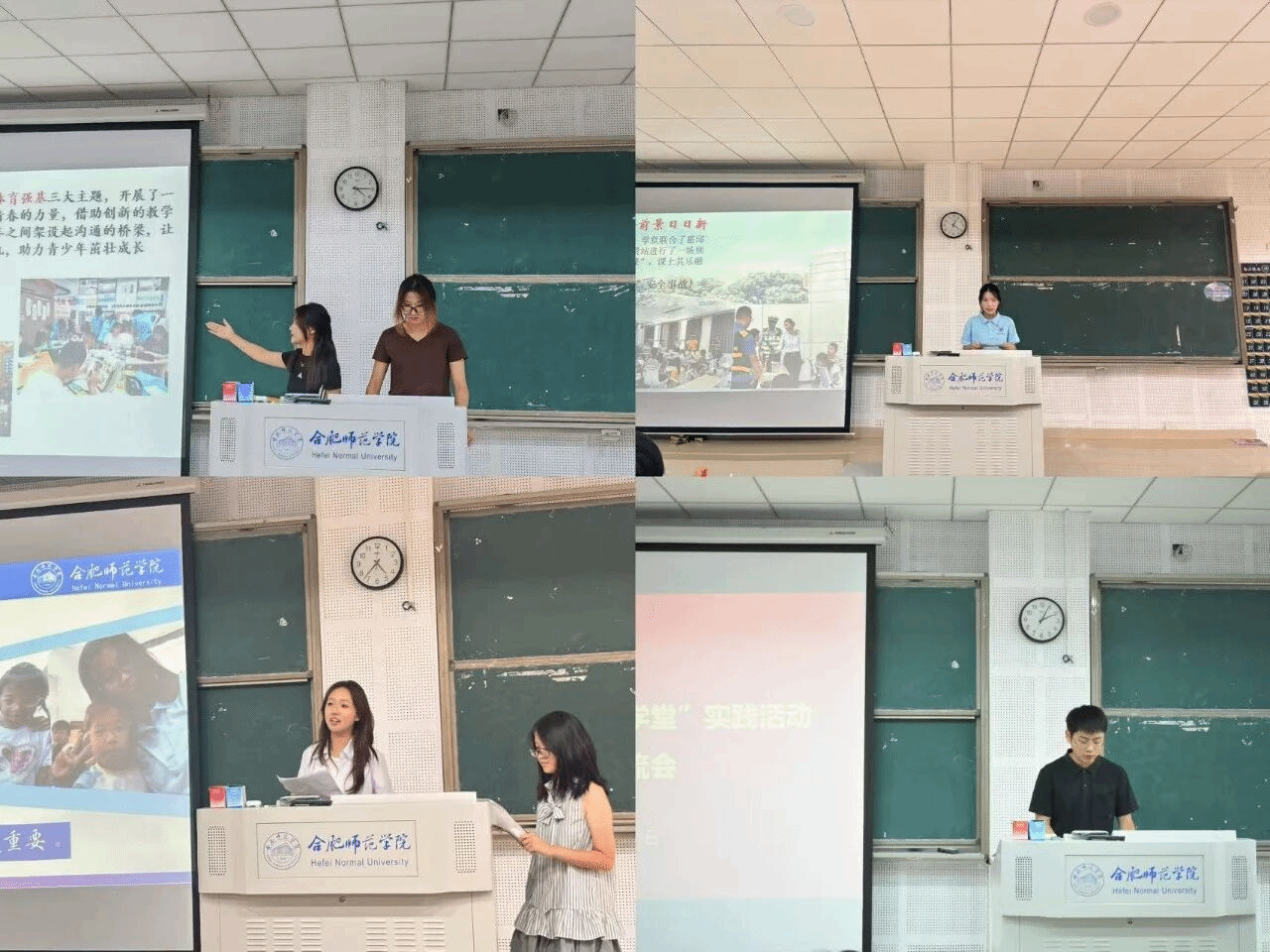 经团队申请、二级学院推荐、院团委审核,共有24支行知学堂团队参与评选,各行知学堂“小先生”按照抽签顺序依次进行PPT汇报和现场解说,从学堂建设、特色亮点、取得成效、未来展望等方面全面展示了学堂过去一年取得的扎实而创新的工作业绩。“小先生”们精神饱满,沉稳自信,通过文字与影像展示这个暑期难忘而富有意义的学堂经历。他们扎根基层、投身实践,用实际行动践行beat365中文官方网站“爱满天下,知行合一”的校训精神,展现出合师学子勇于担当、甘于奉献的优良风貌。在这场与现实紧密结合的“大思政课”中,他们不断提升自我、增长才干、贡献力量,引领小学员坚定理想信念、培育家国情怀、传承优秀文化、发展兴趣特长、拓宽知识视野。在教与学的良性互动中,各位“小先生”与孩子们共同成长,度过了一个充实而富有价值的暑假。