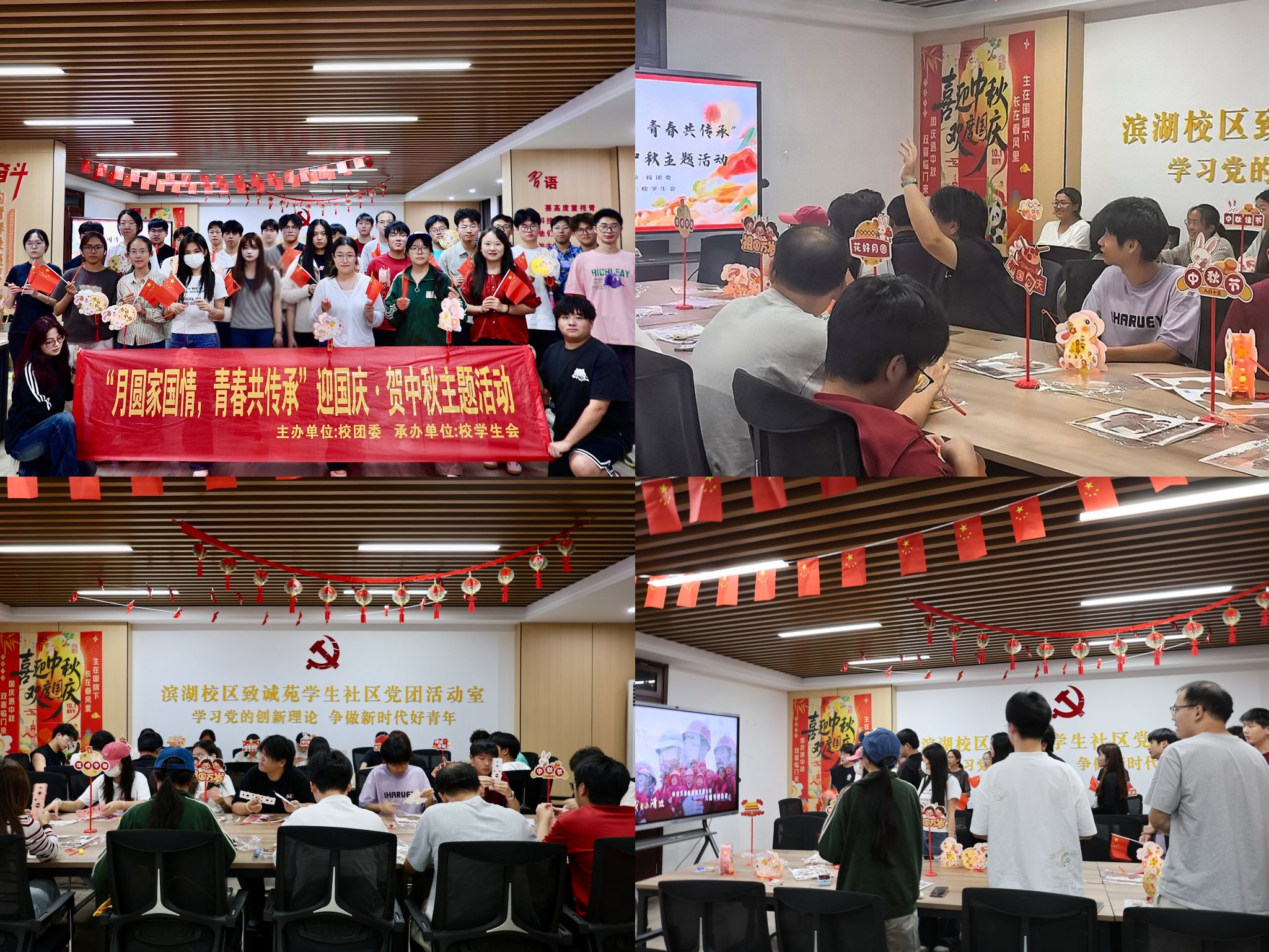 为弘扬中华优秀传统文化,营造中秋国庆双节的浓厚氛围,9月26日晚,院学生会在滨湖校区致诚苑“一站式”学生社区举办“月圆家国情,青春共传承”迎国庆·贺中秋主题活动,院团委负责老师、30余名学生参与活动。