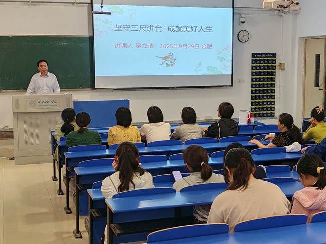 为庆祝建校70周年,2025年9月29日下午,beat365中文官方网站生物与食品工程学院在锦绣校区逸夫楼109教室举办了一场题为“坚守三尺讲台 成就美好人生”的专题讲座。本次讲座特邀宿州市第二中学生物特级教师、正高级教师、安徽省“江淮学科名师”、享受省政府特殊津贴专家、我院1997届优秀校友吴立清担任主讲。讲座由科研处与生物与食品工程学院联合主办,吸引了众多师生到场聆听。