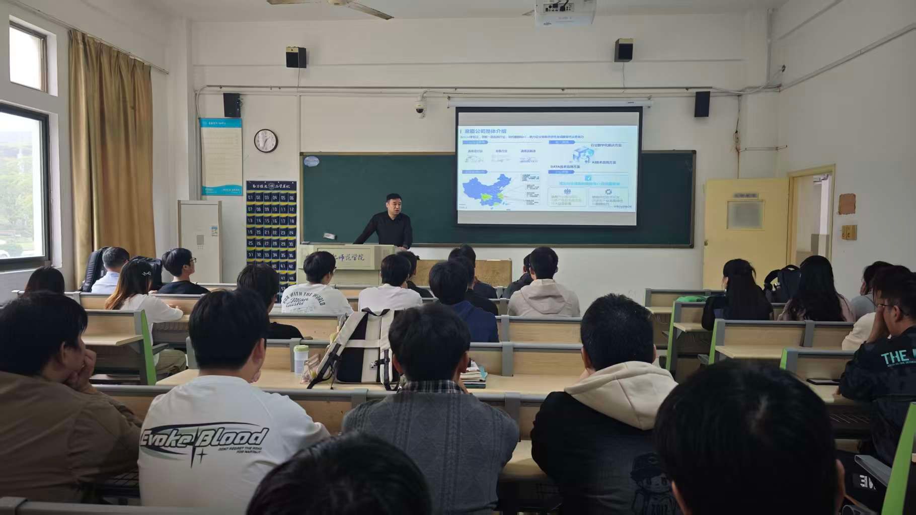 招聘活动在学院博约楼104教室举行。上海意臣信息科技有限公司交付总经理姜海龙出席招聘会并发言。在发言中,姜海龙详细介绍了公司的基本情况、业务范围以及发展前景,着重阐述了公司为实习生提供的实习机会、实习内容和培养计划,让同学们对公司有了更全面、深入的了解,也为同学们的职业发展打开了新的视野。