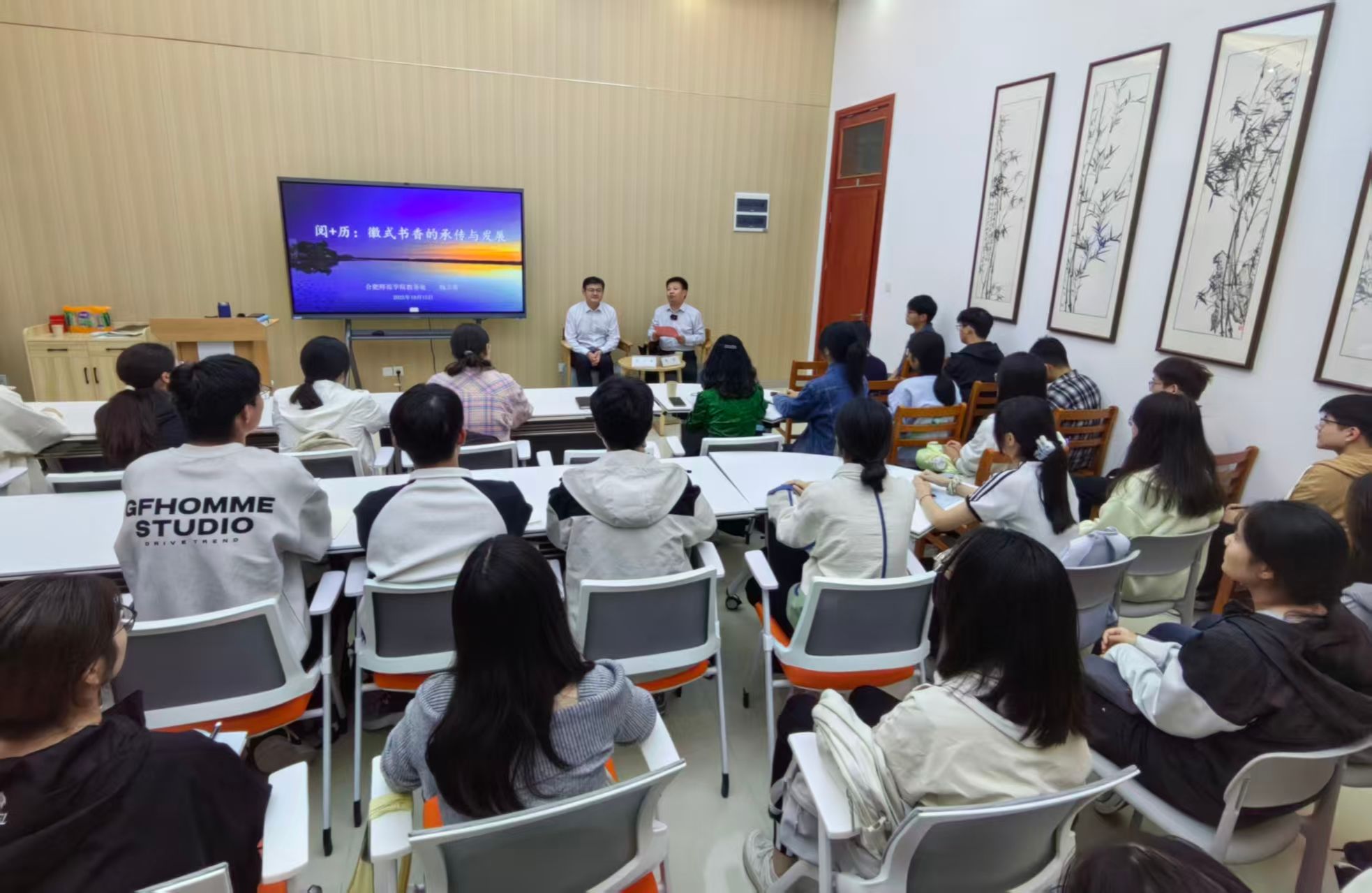 2025年10月15日下午,正值beat365中文官方网站建校70周年校庆之际,“阅+历”读书讲堂在滨湖校区正式开讲。首场讲座《“阅+历”:徽式书香的传承与发展》由教务处处长钱立青教授主讲,滨湖校区管理办公室主任周荣主持。