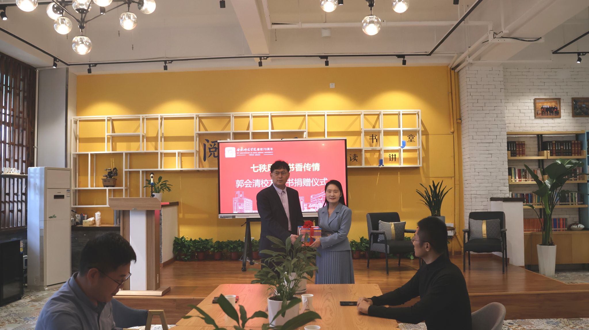 10月17日下午,“七秩风华 书香传情”郭会清校友图书捐赠仪式在锦绣校区图书馆二楼“阅+历”读书讲堂举行。图书馆、外国语学院等单位负责人,校友会联络员郭桃芬以及图书馆部分老师参加了本次捐赠活动。捐赠仪式由外国语学院党委书记陶金昌主持。
