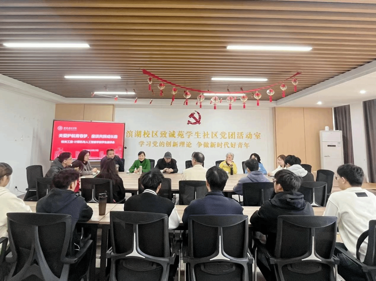 为充分发挥退休老同志在青年学生成长成才过程中的 “传帮带” 作用,10月23日,校关心下一代工作委员会与计算机与人工智能学院于滨湖校区1栋一站式社区联合举行“关爱护航青春梦,座谈共探成长路” 主题师生座谈会。校关工委副主任杨晓民、张华、胡颖、何懿、秘书夏姝,离退休工作处处长马四民、郑支农,滨湖校区综合管理办公室钟洁、夏亚森老师,学院师生代表参加座谈。座谈会由学院党委书记王祥主持。