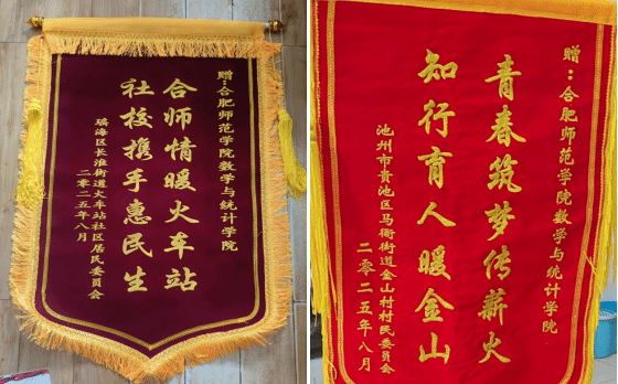 近日,一面绣有 “青春筑梦传薪火,知行育人暖金山” 的锦旗与一封感谢信,从金山村村委会寄至数学与统计学院。信中,村委会高度肯定金山行知学堂在非遗文化传承与儿童教育支持中的积极作用。这面锦旗不仅成为行知学堂实践成果的生动见证,更彰显了新时代青年与基层“双向奔赴”的动人故事。