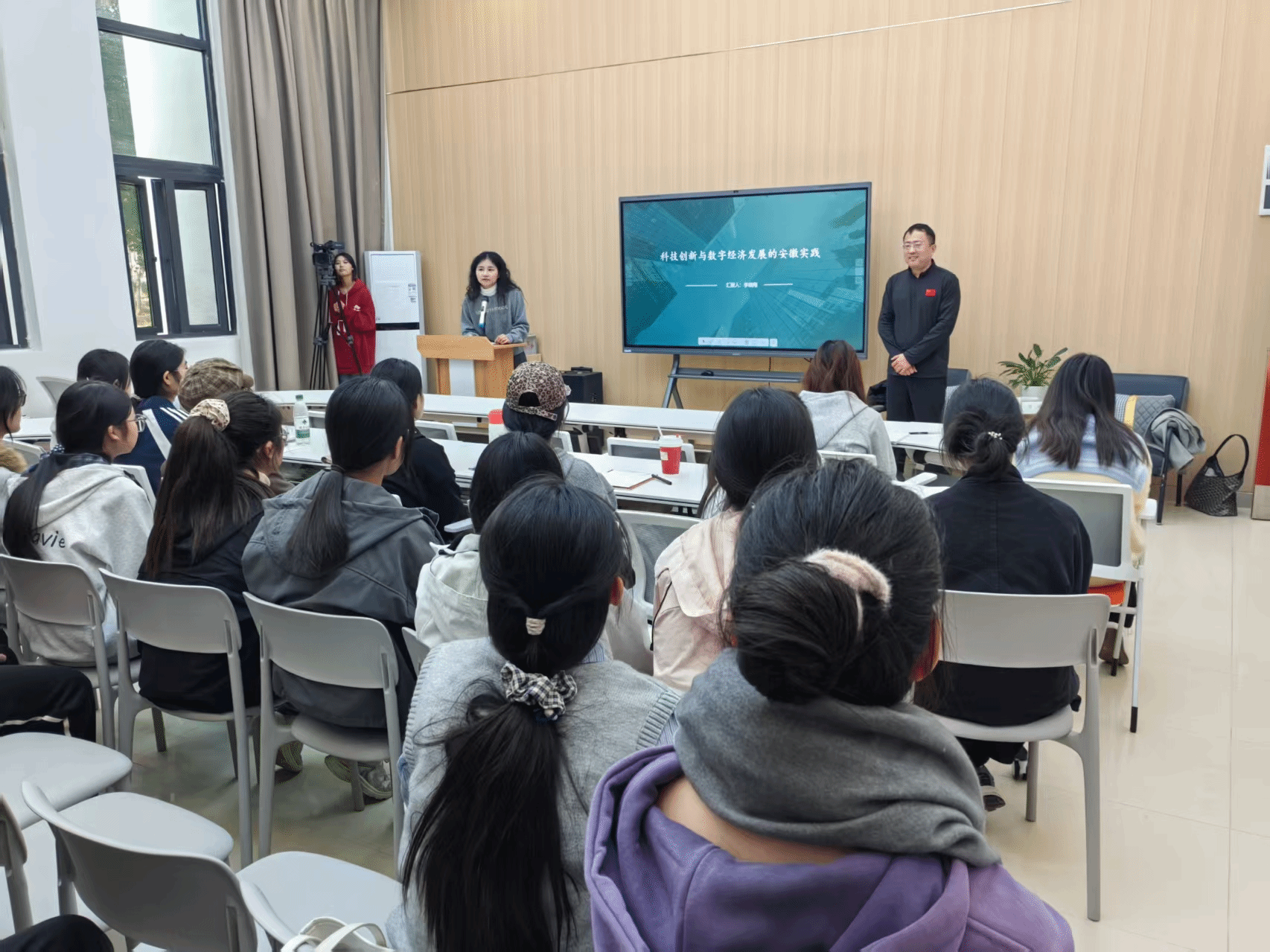 11月5日,为进一步丰富滨湖校区学生校园文化建设,增长学生学术学识视野,滨湖校区“阅+历”读书讲堂第四课如期开课。本次主讲嘉宾是学校经济与管理学院院长、博士生导师李晓翔院长,演讲主题是“科技创新与数字经济发展的安徽实践”。主持人是校园阅读推广人万诗婕,读书讲堂的选课同学全员参与。