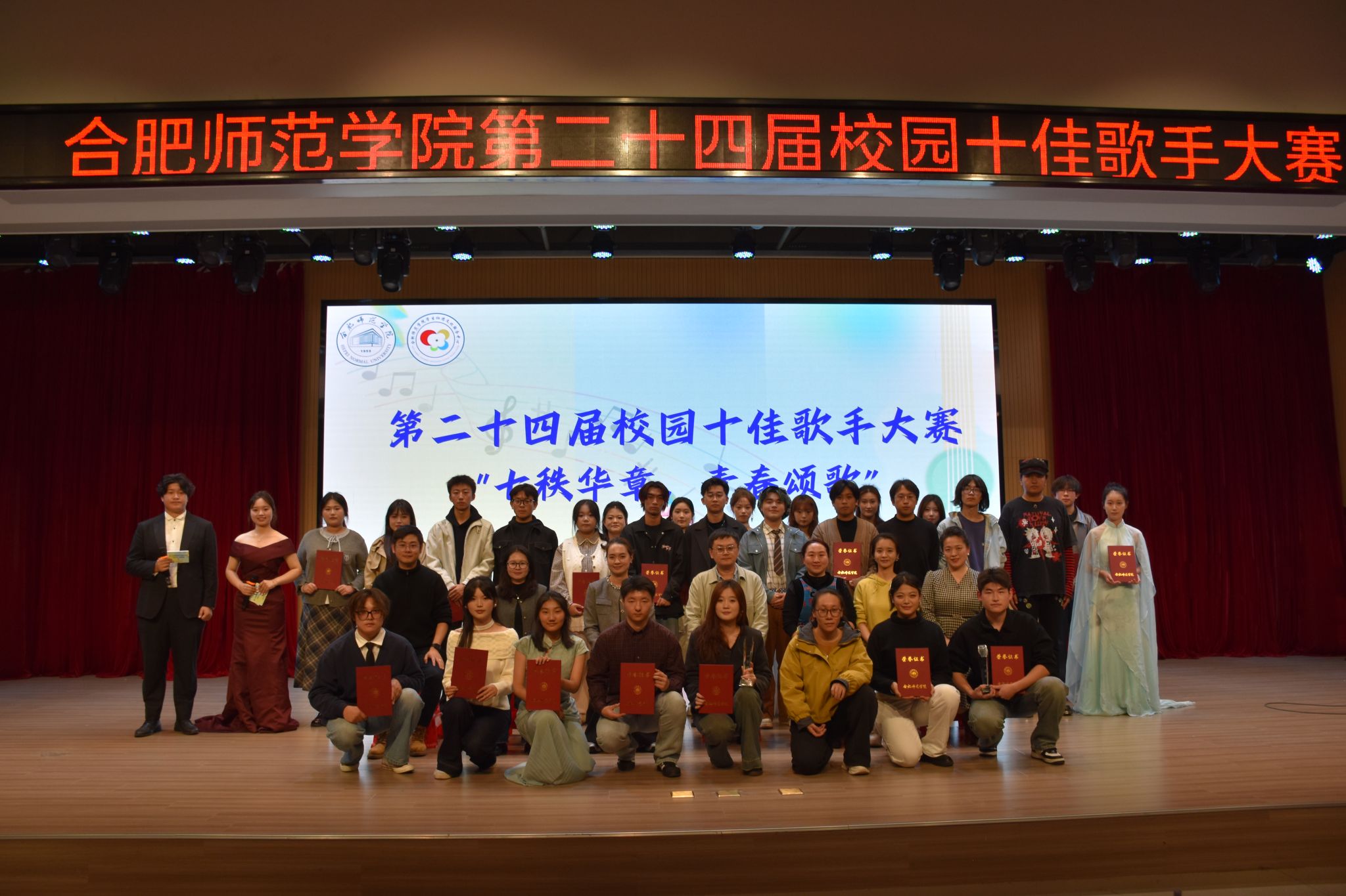 11月12日晚,由院团委主办、学生社团文化服务中心承办的“七秩华章,青春颂歌”第二十四届校园歌手大赛决赛于锦绣校区大学生活动中心圆满落幕。300余名学生现场观看,4000余人线上通过“合师青年”公众号观看直播。