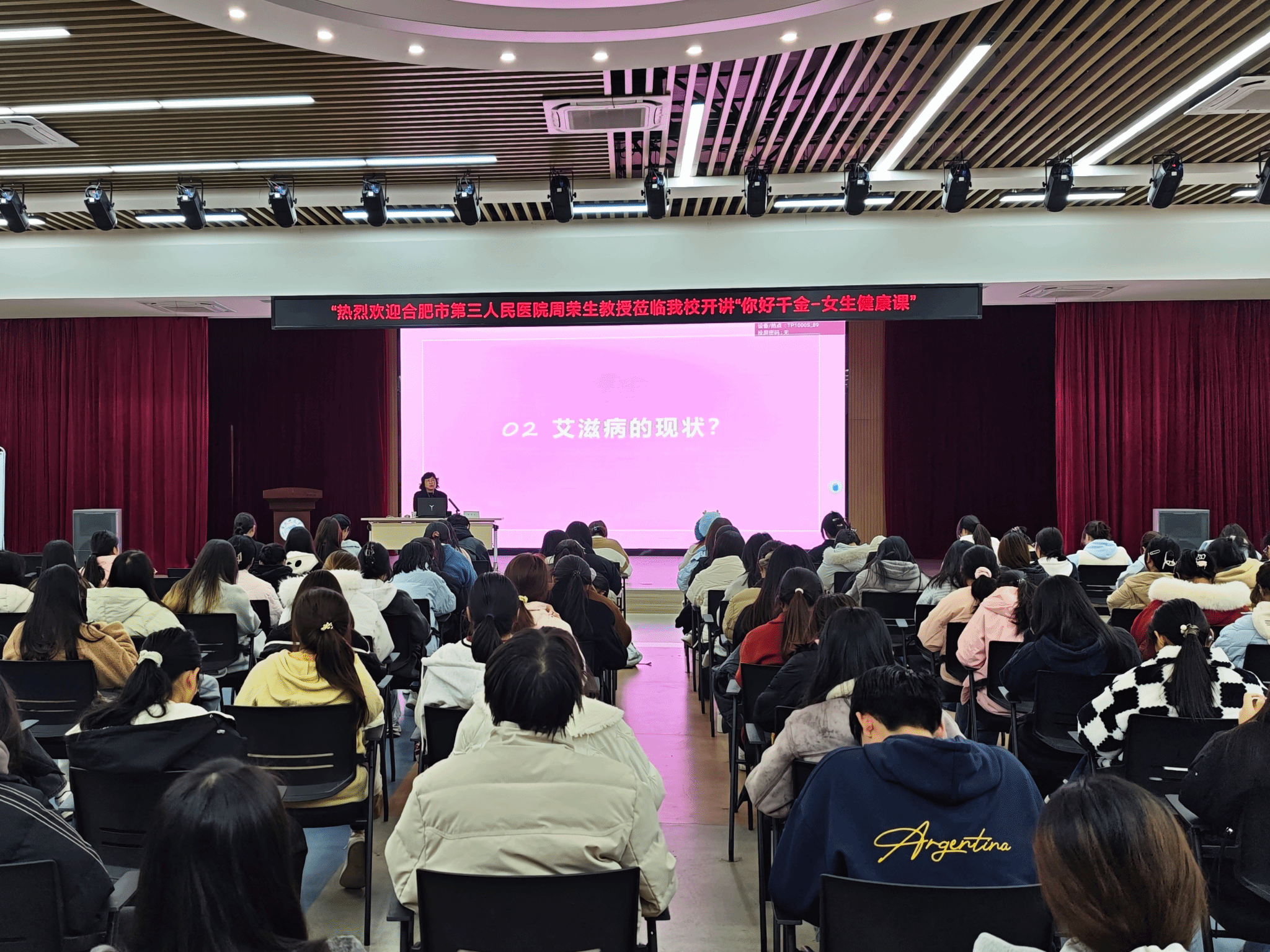 两场讲座分别由合肥市第三人民医院副院长周荣生、妇科主任夏晓平主讲,两位医师结合自己丰富的临床经验与深厚的学术积淀,围绕“女性生殖系统常见病防治、青春期至成年期生理变化、内分泌调节”和“艾滋病的现状、特点、预防措施、诊断与治疗”等核心内容,为同学们由浅入深地解读健康密码,带来科学、专业的健康指引,分享了疾病预防和身心养护的实用知识。
