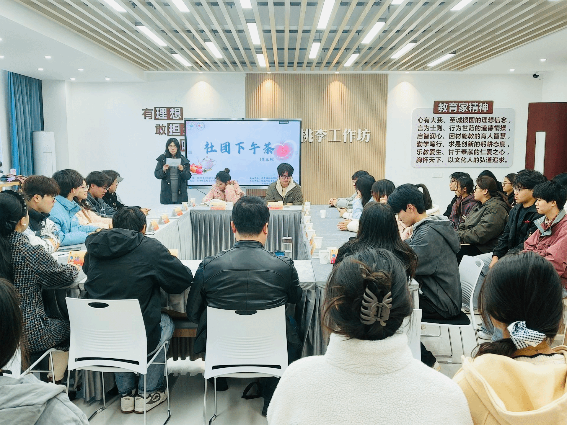 11月19日下午,由院团委主办、学生社团文化服务中心承办的第五期“社团下午茶”活动,在滨湖校区“润心桃李”工作坊一站式学生社区顺利举行。本次活动以“心理健康与社团发展”为主题,旨在助力学生心理健康成长、优化校园社团管理,学生工作处黄湘涛,演讲与辩论协会和法律与志愿服务者协会指导老师谷向阳、院团委姚瑶、魏晓倩,与各学生社团代表齐聚一堂,通过多元形式为学生心理健康护航,为社团高质量发展建言献策。